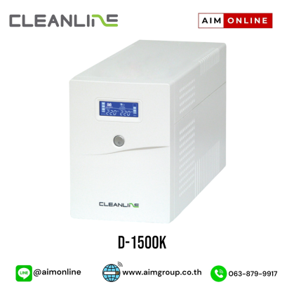 CLEANLINE D-1500K:1500VA/900W UPS รับประกัน 2 ปี สอบถามข้อมูลเพิ่มเติมติดต่อฝ่ายขาย Line ID : @aimonline ฝ่ายขายโทร: 063-879-9917 ( สินค้ายังไม่รวมภาษีมูลค่าเพิ่ม, ค่าขนส่ง ) เช็คสต๊อกล่าสุดสินค้าก่อนสั่งซื้อ #NP24