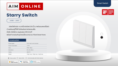 Starry SwitchLive & Netrual(1 Gangs) : 3x3 Type Starry Switch (1 way) Independent power supply, perfect solution for live only wiring.ขอราคาพิเศษและสอบถามข้อมูลเพิ่มเติมติดต่อ Mobile : 063-879-9917Line ID : @aimonlineTel : 02-088-5290 (สินค้ายังไม่รวมภาษีมูลค่าเพิ่ม,ค่าขนส่ง ,ราคาอาจมีการเปลี่ยนแปลงได้ โดยไม่แจ้งให้ทราบล่วงหน้า)
