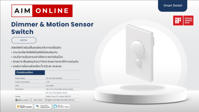 Dimmer Switch & Motion Sensor 120 type, work with smart station, remote control the light's brightness, linkage with motion sensor to manage power ขอราคาพิเศษและสอบถามข้อมูลเพิ่มเติมติดต่อ Mobile : 063-879-9917Line ID : @aimonlineTel : 02-088-5290 (สินค้ายังไม่รวมภาษีมูลค่าเพิ่ม,ค่าขนส่ง ,ราคาอาจมีการเปลี่ยนแปลงได้ โดยไม่แจ้งให้ทราบล่วงหน้า)
