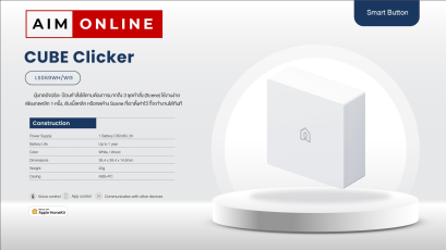 Cube Clicker สั่งเปิด/ปิด อุปกรณ์ในบ้าน ได้โดยกดที่ Cube Clickerเชื่อมต่อกับ Scene หรือ Trigger ที่ตั้งไว้ ขอราคาพิเศษและสอบถามข้อมูลเพิ่มเติมติดต่อ Mobile : 063-879-9917Line ID : @aimonlineTel : 02-088-5290 (สินค้ายังไม่รวมภาษีมูลค่าเพิ่ม,ค่าขนส่ง ,ราคาอาจมีการเปลี่ยนแปลงได้ โดยไม่แจ้งให้ทราบล่วงหน้า)