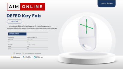 DEFED Key Fob A portable and easy-to-use ancillary control of alarm system.ขอราคาพิเศษและสอบถามข้อมูลเพิ่มเติมติดต่อ Mobile : 063-879-9917Line ID : @aimonlineTel : 02-088-5290 (สินค้ายังไม่รวมภาษีมูลค่าเพิ่ม,ค่าขนส่ง ,ราคาอาจมีการเปลี่ยนแปลงได้ โดยไม่แจ้งให้ทราบล่วงหน้า)