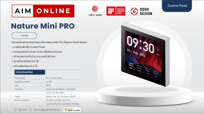 Nature 7 Pro The all-in-one smart control panel serving as a personal butler ขอราคาพิเศษและสอบถามข้อมูลเพิ่มเติมติดต่อ Mobile : 063-879-9917Line ID : @aimonlineTel : 02-088-5290 (สินค้ายังไม่รวมภาษีมูลค่าเพิ่ม,ค่าขนส่ง ,ราคาอาจมีการเปลี่ยนแปลงได้ โดยไม่แจ้งให้ทราบล่วงหน้า)