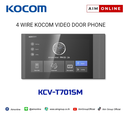 KOCOM INTERCOM สามารถติดตั้งกับผนังได้และมีจอ LCD ขนาด 7 นิ้ว ·KCV-S701EB สามารถสนทนากับตัวกริ่งได้ไม่ต่ำกว่า 3 นาที · มีไมค์โครโฟนกับลำโพง อินเตอร์คอมสื่อสาร คุณภาพมาตรฐาน แบรนด์ชั้นนำจากประเทศเกาหลีใต้ ขอราคาพิเศษและสอบถามข้อมูลเพิ่มเติมติดต่อ Line ID : @aimonline Tel : 02-088-5290 Mobile : 063-879-9917 Facebook : aimgrouponline ***( สินค้ายังไม่รวมภาษีมูลค่าเพิ่ม,ค่าขนส่ง ,ราคาอาจมีการเปลี่ยนแปลงได้ โดยไม่แจ้งให้ทราบล่วงหน้า) เช็คสต๊อกสินค้าก่อนสั่งซื้อ Line ID : @aimonline