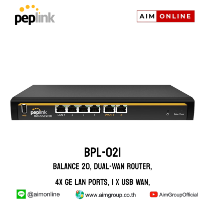 " End Of Line " ยกเลิกการผลิต ใช้รุ่นB-ONE-T-PRM ทดแทน # Balance 20, Dual-WAN Router, 4x GE LAN Ports, 1 x USB WAN, ขอราคาพิเศษและสอบถามข้อมูลเพิ่มเติมติดต่อ Mobile : 063-879-9917Line ID : @aimonline Tel : 02-088-5290 (สินค้ายังไม่รวมภาษีมูลค่าเพิ่ม,ค่าขนส่ง ,ราคาอาจมีการเปลี่ยนแปลงได้ โดยไม่แจ้งให้ทราบล่วงหน้า)