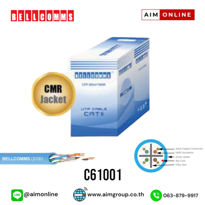 BELLCOMMS รุ่น C61001 CAT6 UTP Cable 600Mhz,Indoor Blue (305 M./Box) ขอราคาพิเศษสำหรับงานโครงการติดต่อฝ่ายขาย Line ID : @aimonline ฝ่ายขายโทร: 063-879-9917 ( สินค้ายังไม่รวมภาษีมูลค่าเพิ่ม, ค่าขนส่ง ) เช็คสต๊อกล่าสุดสินค้าก่อนสั่งซื้อ