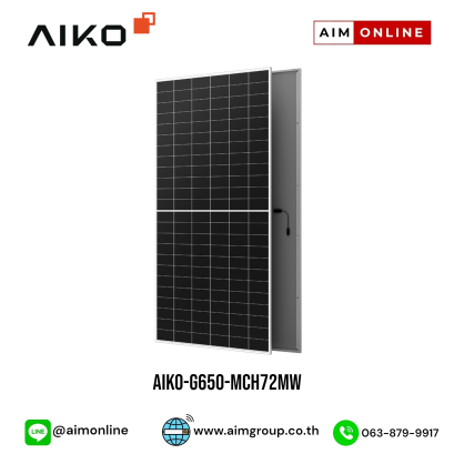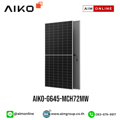AIKO Solar Mono Glass Module 645 Watt Model:AIKO-G645-MCH72Mw ขอราคาพิเศษสำหรับงานโครงการ ติดต่อฝ่ายขาย Line ID : @aimonline ฝ่ายขายโทร: 063-879-9917 ( สินค้ายังไม่รวมภาษีมูลค่าเพิ่ม, ค่าขนส่ง ) เช็คสต๊อกล่าสุดสินค้าก่อนสั่งซื้อ ราคายังไม่รวมค่าติดตั้ง #NP24