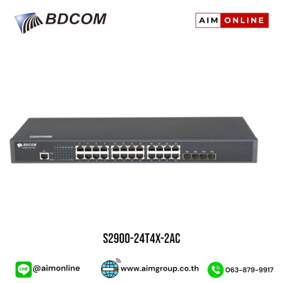 BDCOM 24-Port Gigabit RJ45 4-Port 10G/GE SFP+ Model:S2900-24T4X-2AC ขอราคาพิเศษสำหรับงานโครงการติดต่อฝ่ายขายโทร: 063-879-9917 ( สินค้ายังไม่รวมภาษีมูลค่าเพิ่ม, ค่าขนส่ง ราคาอาจมีการเปลี่ยนแปลงตามอัตราแลกเปลี่ยน โดยไม่แจ้งให้ทราบล่วงหน้า) เช็คสต๊อกสินค้าก่อนสั่งซื้อ #W0E