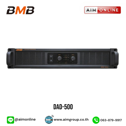 BMB Amplifier รุ่น DAD-500 เครื่องขยายเสียงแบบมืออาชีพ กำลังขับ 500 วัตต์ X 2 ชาแนล 8 โอห์ม (Stereo Mode), ที่ 1,000 วัตต์ (Bridge Mode), Input เสียง XLR-Type 2 ชาแนล, ขั๋ว Output แบบ SpeakON, พัดลมระบายความร้อนอัตโนมัติ ขอราคาพิเศษและสอบถามข้อมูลเพิ่มเติมติดต่อ Mobile : 063-879-9917Line ID : @aimonline Tel : 02-088-5290 (สินค้ายังไม่รวมภาษีมูลค่าเพิ่ม,ค่าขนส่ง ,ราคาอาจมีการเปลี่ยนแปลงได้ โดยไม่แจ้งให้ทราบล่วงหน้า) #SI