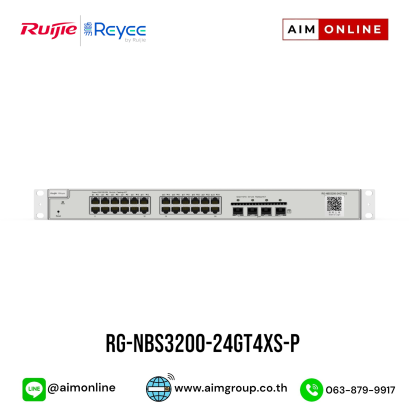 24-Port L2 Managed POE 10G Switch, 24 Gigabit RJ45 POE/POE+ Ports, 4 *10G SFP+ Slots, 370W PoE power budget,19-inch Rack-mountable Steel Case รุ่น RG-NBS3200-24GT4XS-P ขอราคาพิเศษสำหรับงานโครงการติดต่อฝ่ายขาย Line ID : @aimonline ฝ่ายขายโทร: 063-879-9917 ( สินค้ายังไม่รวมภาษีมูลค่าเพิ่ม, ค่าขนส่ง , สินค้าสั่งต่างประเทศราคาอาจมีการเปลี่ยนแปลงตามอัตราแลกเปลี่ยน โดยไม่แจ้งให้ทราบล่วงหน้า) เช็คสต๊อกสินค้าก่อนสั่งซื้อ #W01D58G80D231125MP