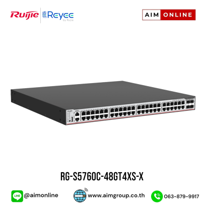RUIJIE 48-Port GE Electrical Layer 3 Enterprise-Class PoE Core or Aggregation Switch, Four 10G Uplink Ports รุ่น : RG-S5760C-48GT4XS-HP-X ขอราคาพิเศษสำหรับงานโครงการติดต่อฝ่ายขาย Line ID : @aimonline ฝ่ายขายโทร: 063-879-9917 ( สินค้ายังไม่รวมภาษีมูลค่าเพิ่ม, ค่าขนส่ง , สินค้าสั่งต่างประเทศราคาอาจมีการเปลี่ยนแปลงตามอัตราแลกเปลี่ยน โดยไม่แจ้งให้ทราบล่วงหน้า) เช็คสต๊อกสินค้าก่อนสั่งซื้อ #WD0590G08D231203RAM