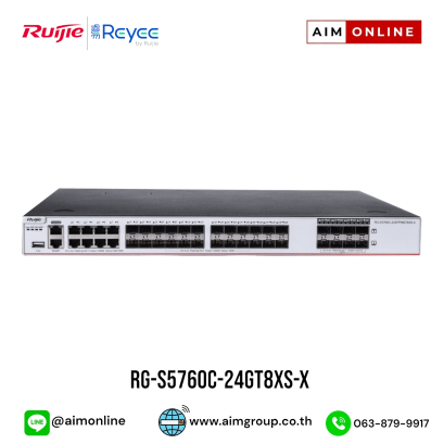 RUIJIE 24-Port GE Optical Layer 3 Enterprise-Class Core or Aggregation Switch (with Eight Combo Ports), Eight 10G Uplink Ports รุ่น : RG-S5760C-24SFP/8GT8XS-X ขอราคาพิเศษสำหรับงานโครงการติดต่อฝ่ายขาย Line ID : @aimonline ฝ่ายขายโทร: 063-879-9917 ( สินค้ายังไม่รวมภาษีมูลค่าเพิ่ม, ค่าขนส่ง , สินค้าสั่งต่างประเทศราคาอาจมีการเปลี่ยนแปลงตามอัตราแลกเปลี่ยน โดยไม่แจ้งให้ทราบล่วงหน้า) เช็คสต๊อกสินค้าก่อนสั่งซื้อ #WD8380G05D231203RAM