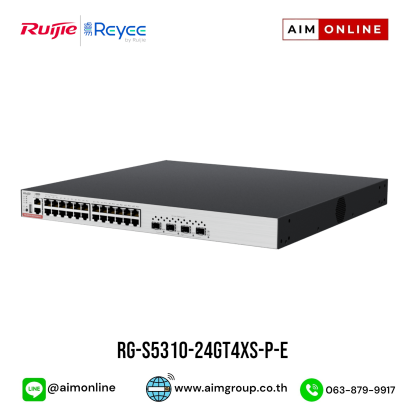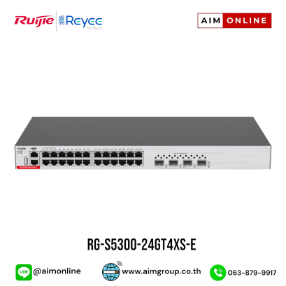 RUIJIE 24-Port GE Electrical Layer 3 Managed Access Switch, 10G Uplink รุ่น : RG-S5300-24GT4XS-E ขอราคาพิเศษสำหรับงานโครงการติดต่อฝ่ายขาย Line ID : @aimonline ฝ่ายขายโทร: 063-879-9917 ( สินค้ายังไม่รวมภาษีมูลค่าเพิ่ม, ค่าขนส่ง , สินค้าสั่งต่างประเทศราคาอาจมีการเปลี่ยนแปลงตามอัตราแลกเปลี่ยน โดยไม่แจ้งให้ทราบล่วงหน้า) เช็คสต๊อกสินค้าก่อนสั่งซื้อ #WD8510GN2D231203RAM