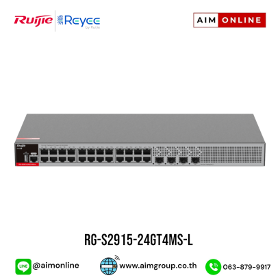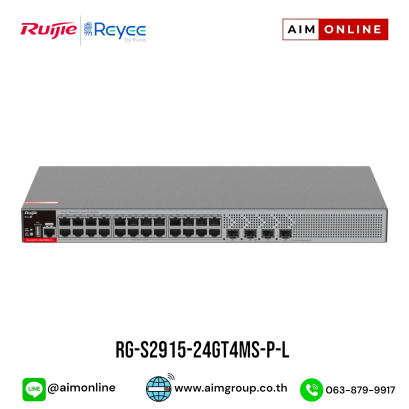 RUIJIE 24-Port Gigabit Layer 2+ Managed PoE+ Switch with Four 2.5GE Uplink SFP Ports รุ่น : RG-S2915-24GT4MS-P-L ขอราคาพิเศษสำหรับงานโครงการติดต่อฝ่ายขาย Line ID : @aimonline ฝ่ายขายโทร: 063-879-9917 ( สินค้ายังไม่รวมภาษีมูลค่าเพิ่ม, ค่าขนส่ง , สินค้าสั่งต่างประเทศราคาอาจมีการเปลี่ยนแปลงตามอัตราแลกเปลี่ยน โดยไม่แจ้งให้ทราบล่วงหน้า) เช็คสต๊อกสินค้าก่อนสั่งซื้อ #WD9140GN1D231203RAM