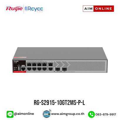 RUIJIE 24-Port Gigabit Layer 2+ Managed Switch with Four 2.5GE Uplink SFP Ports รุ่น : RG-S2915-10GT2MS-P-L ขอราคาพิเศษสำหรับงานโครงการติดต่อฝ่ายขาย Line ID : @aimonline ฝ่ายขายโทร: 063-879-9917 ( สินค้ายังไม่รวมภาษีมูลค่าเพิ่ม, ค่าขนส่ง , สินค้าสั่งต่างประเทศราคาอาจมีการเปลี่ยนแปลงตามอัตราแลกเปลี่ยน โดยไม่แจ้งให้ทราบล่วงหน้า) เช็คสต๊อกสินค้าก่อนสั่งซื้อ #WD1470GN1D231203RAM