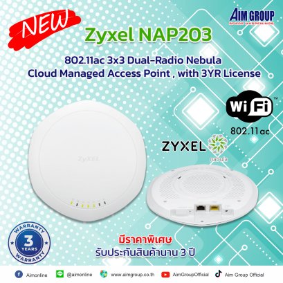 Zyxel NAP203 802.11ac Dual-radio Nebula Cloud Managed Access Point 3x3 SU-MIMO, Lan Gigabit, Standalone/Nebula Cloud รองรับ PoE มีราคาพิเศษ สอบถามข้อมูลเพิ่มเติมติดต่อ บริษัท เอไอเอ็มกรุ๊ป จำกัด www.aimgroup.co.th Tel : 02-088-5290 Mobile : 063-879-9917 Lin ID : aimgrouponline Facebook : aimgrouponline ***(สินค้ายังไม่รวมภาษีมูลค่าเพิ่ม,ค่าขนส่ง ,ราคาอาจมีการเปลี่ยนแปลงได้ โดยไม่แจ้งให้ทราบล่วงหน้า)
