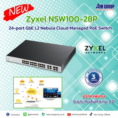 Zyxel Nebula NSW200-28P Cloud Managed PoE Switch is a 375-watt high-power-budget Layer-2 switch with 10 Gigabit uplinks designed to be managed completely from the Nebula cloud มีราคาพิเศษ สอบถามข้อมูลเพิ่มเติมติดต่อ บริษัท เอไอเอ็มกรุ๊ป จำกัด www.aimgroup.co.th Tel : 02-088-5290 Mobile : 063-879-9917 Lin ID : aimgrouponline Facebook : aimgrouponline ***(สินค้ายังไม่รวมภาษีมูลค่าเพิ่ม,ค่าขนส่ง ,ราคาอาจมีการเปลี่ยนแปลงได้ โดยไม่แจ้งให้ทราบล่วงหน้า)
