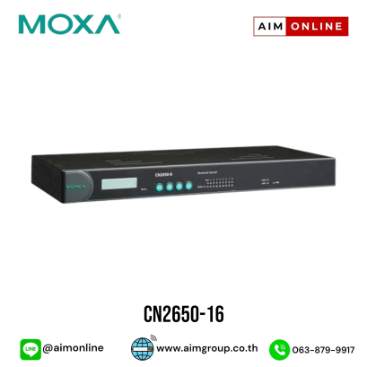 MOXA Terminal Servers Model:CN2650-16 Dual-LAN terminal server with 16 RS-232/422/485 ports ขอราคาพิเศษสำหรับงานโครงการ ติดต่อฝ่ายขาย Line ID : @aimonline ฝ่ายขายโทร: 063-879-9917 ( สินค้ายังไม่รวมภาษีมูลค่าเพิ่ม, ค่าขนส่ง ) เช็คสต๊อกล่าสุดสินค้าก่อนสั่งซื้อ ราคายังไม่รวมค่าติดตั้ง
