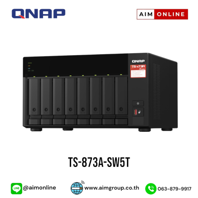 QNAP NAS Model:TS-873A-SW5T Description : 8-bay NAS, AMD Ryzen V1000 series V1500B 4C/8T 2.2GHz, 8GB DDR4 RAM (2 x SODIMM slots, max. 64GB, optional ECC RAM support),สอบถามข้อมูลเพิ่มเติมติดต่อฝ่ายขาย Line ID : @aimonline ฝ่ายขายโทร: 063-879-9917 ( สินค้ายังไม่รวมภาษีมูลค่าเพิ่ม, ค่าขนส่ง ) เช็คสต๊อกล่าสุดสินค้าก่อนสั่งซื้อ ราคายังไม่รวมค่าติดตั้ง #NP24