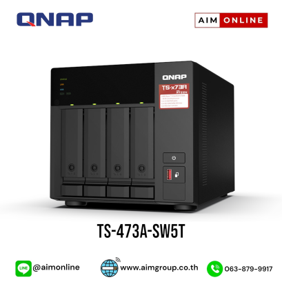 QNAP NAS Model: TS-473A-SW5T Description : 4-bay NAS, AMD Ryzen V1000 series V1500B 4C/8T 2.2GHz, 8GB DDR4 RAM (2 x SODIMM slots, สอบถามข้อมูลเพิ่มเติมติดต่อฝ่ายขาย Line ID : @aimonline ฝ่ายขายโทร: 063-879-9917 ( สินค้ายังไม่รวมภาษีมูลค่าเพิ่ม, ค่าขนส่ง ) เช็คสต๊อกล่าสุดสินค้าก่อนสั่งซื้อ ราคายังไม่รวมค่าติดตั้ง #NP24