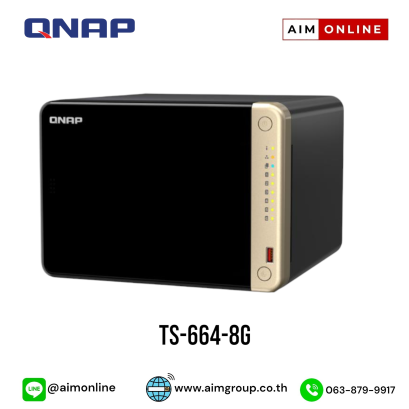 QNAP NAS Model: TS-664-8G 6 Bay Intel Celeron N5105/N5095 4-core/4-thread Processor สอบถามข้อมูลเพิ่มเติมติดต่อฝ่ายขาย Line ID : @aimonline ฝ่ายขายโทร: 063-879-9917 ( สินค้ายังไม่รวมภาษีมูลค่าเพิ่ม, ค่าขนส่ง ) เช็คสต๊อกล่าสุดสินค้าก่อนสั่งซื้อ ราคายังไม่รวมค่าติดตั้ง #NP24