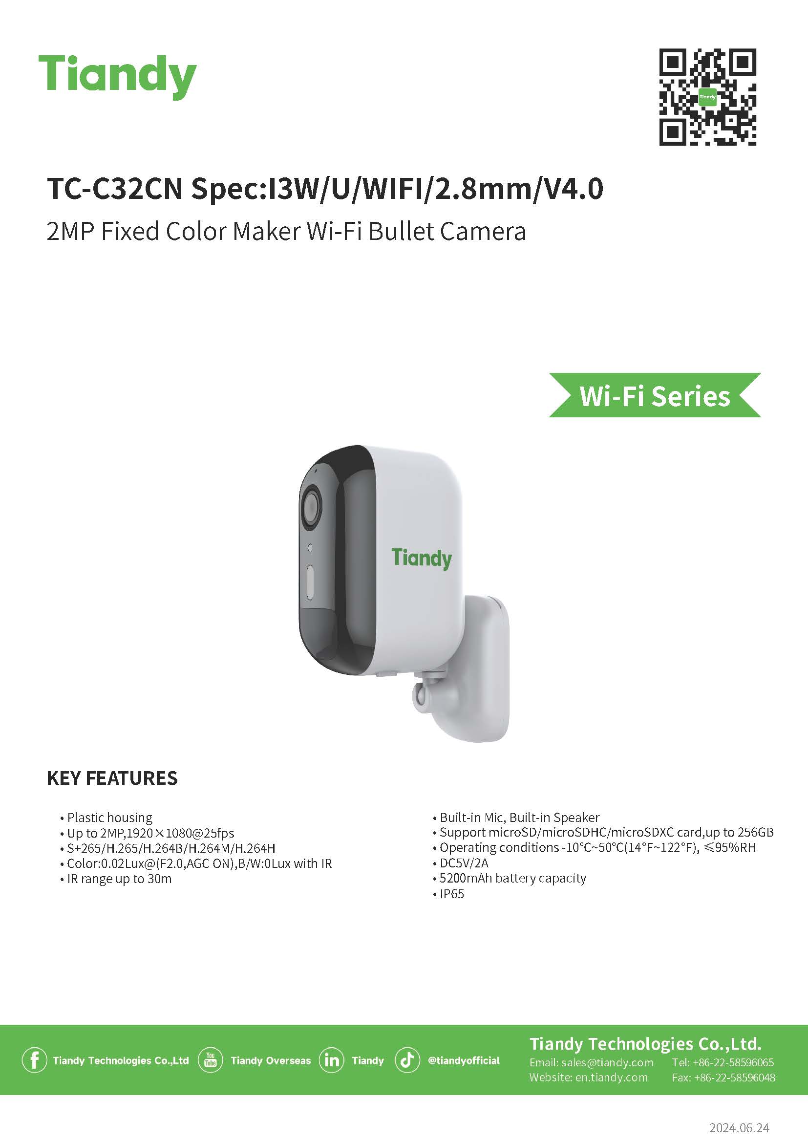 TIANDY TC-C32CN เป็นกล้องวงจรปิดไร้สายที่มีคุณสมบัติครบครัน เหมาะสำหรับการใช้งานทั่วไปภายในบ้านหรือสำนักงานขนาดเล็ก ด้วยราคาที่เหมาะสมและการติดตั้งที่ง่าย ทำให้เป็นตัวเลือกที่น่าสนใจสำหรับผู้ที่ต้องการกล้องวงจรปิดแบบไร้สาย