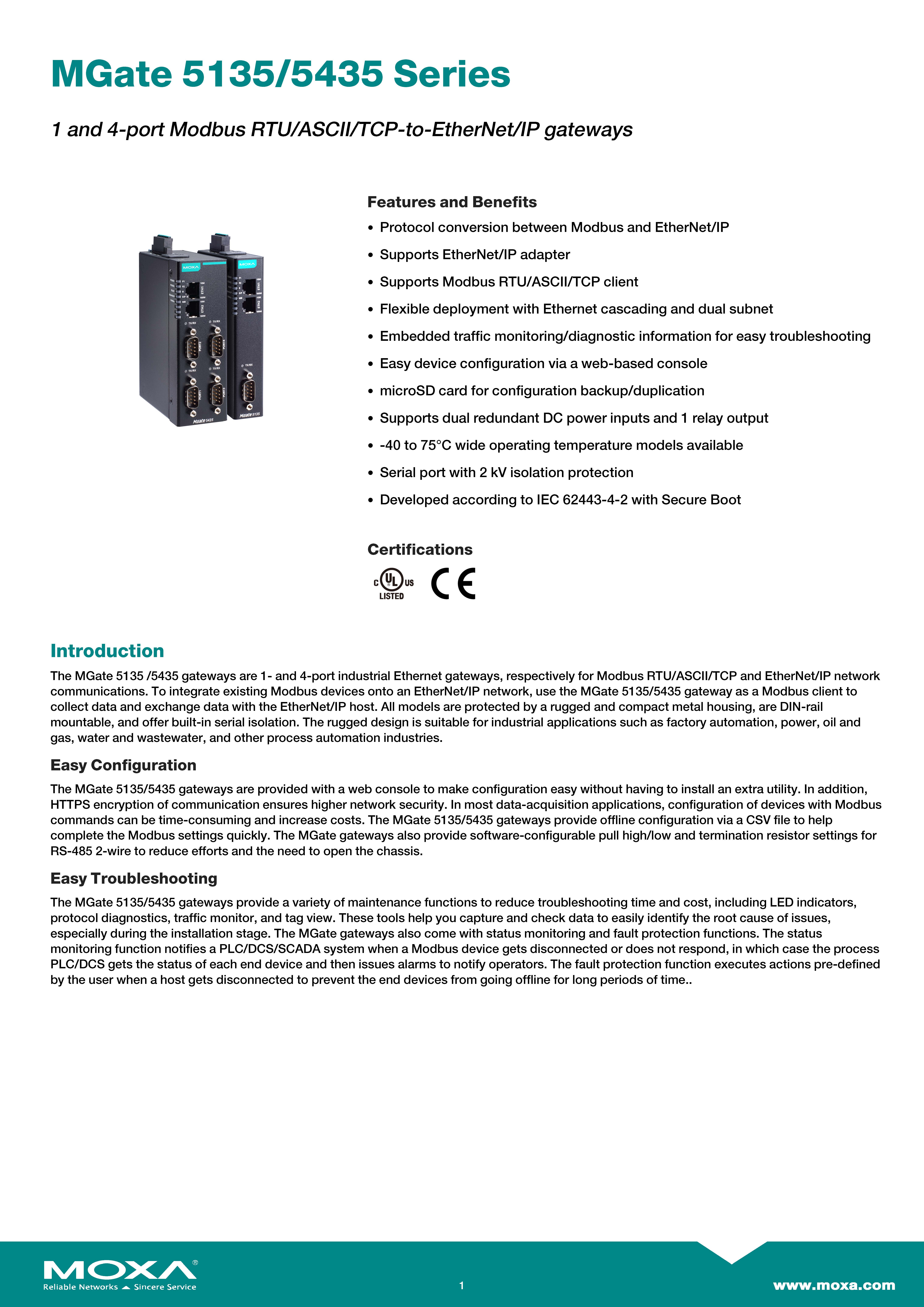 MOXA 4-port Modbus RTU/ASCII/TCP-to-EtherNet/IP gateways Model MGate 5435 ขอราคาพิเศษสำหรับงานโครงการ ติดต่อฝ่ายขาย Line ID : @aimonline ฝ่ายขายโทร: 063-879-9917 ( สินค้ายังไม่รวมภาษีมูลค่าเพิ่ม, ค่าขนส่ง ) เช็คสต๊อกล่าสุดสินค้าก่อนสั่งซื้อ ราคายังไม่รวมค่าติดตั้ง #NP24