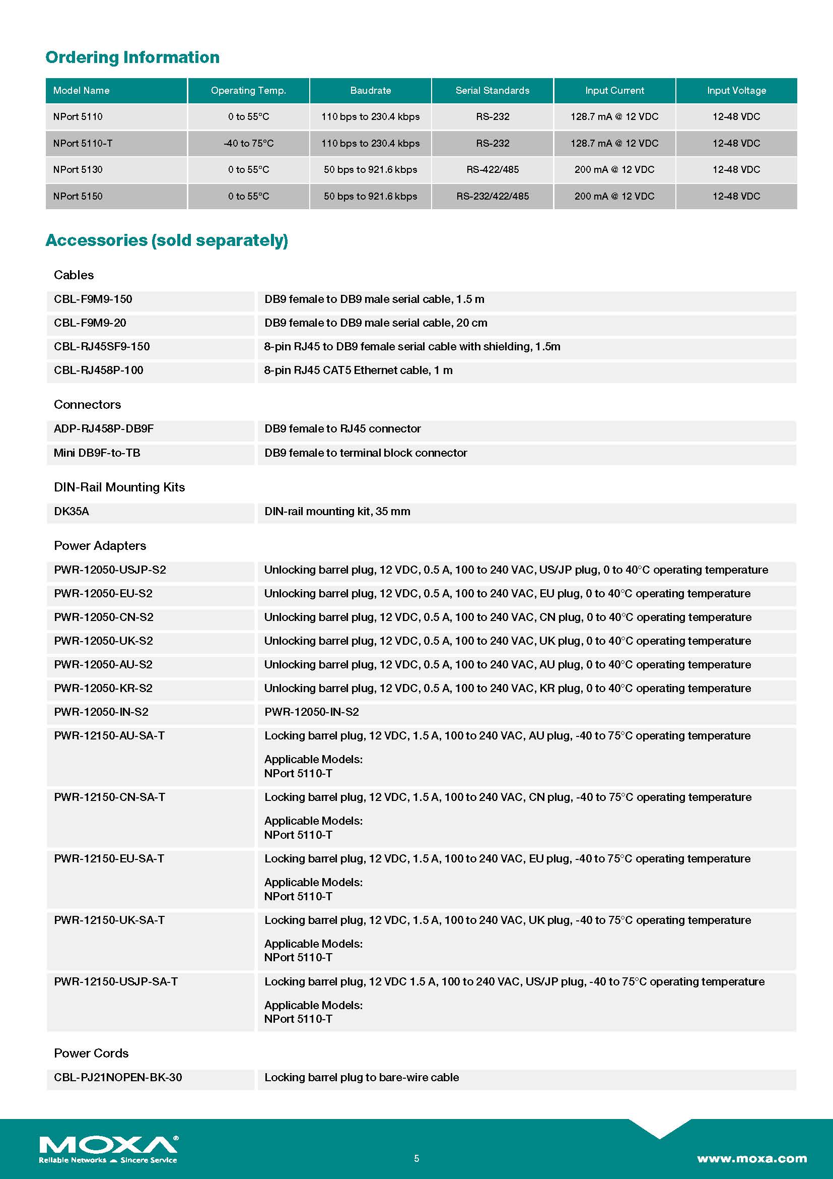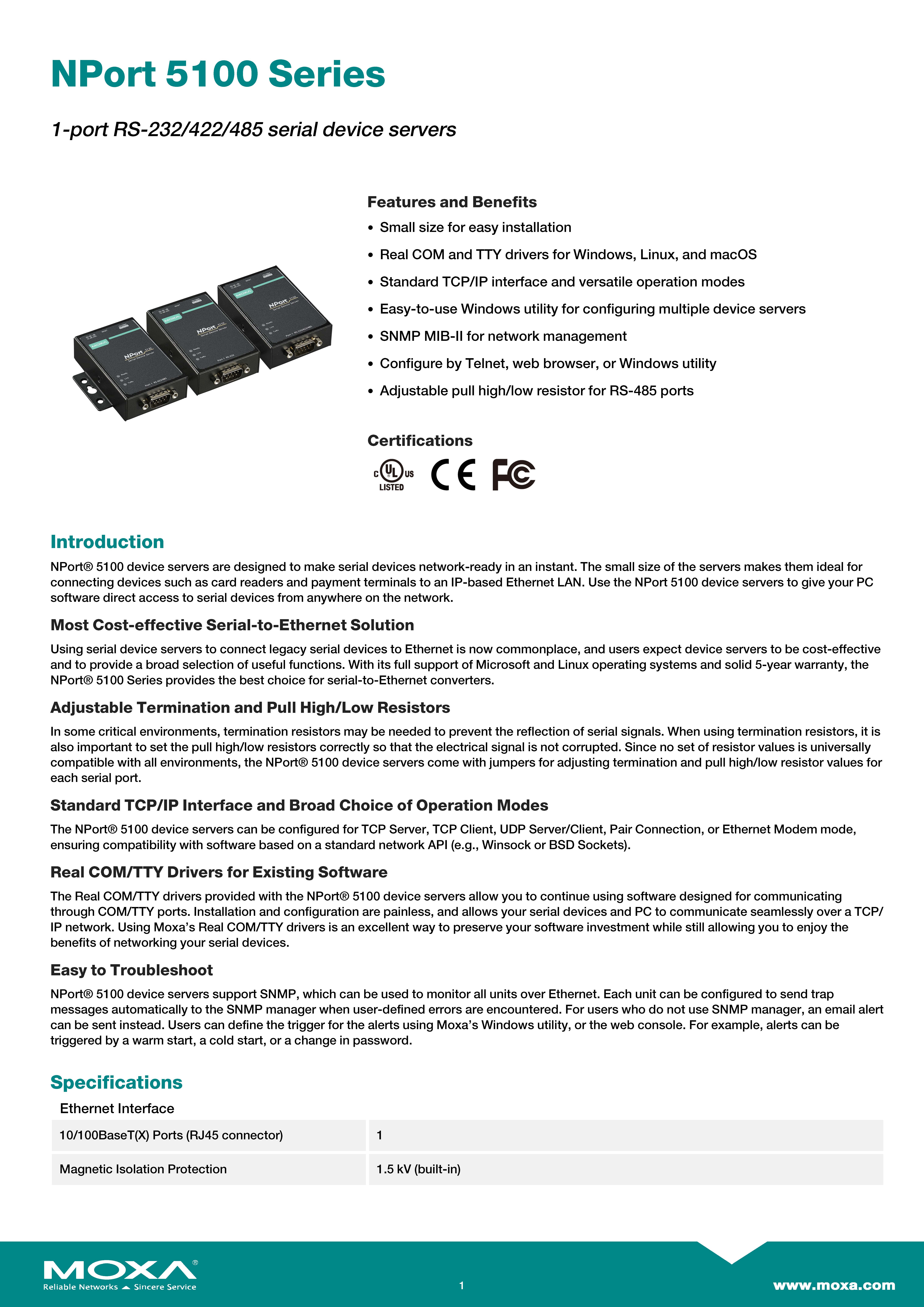 MOXA 1-port device server, 10/100M ethernet, RS-232 DB9 male, 12~48 VDC, 0~55°C Model NPort 5110 ขอราคาพิเศษสำหรับงานโครงการ ติดต่อฝ่ายขาย Line ID : @aimonline ฝ่ายขายโทร: 063-879-9917 ( สินค้ายังไม่รวมภาษีมูลค่าเพิ่ม, ค่าขนส่ง ) เช็คสต๊อกล่าสุดสินค้าก่อนสั่งซื้อ ราคายังไม่รวมค่าติดตั้ง #NP24