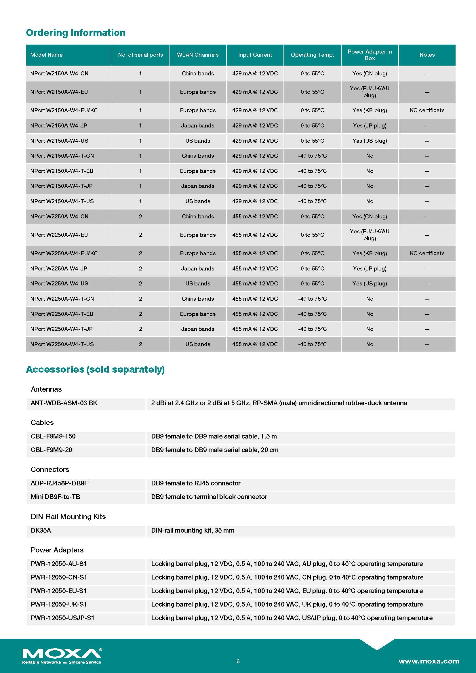 MOXA Wireless Device Servers 2-port RS-232/422/485 wireless device server with 802.11a/b/g/n WLAN CN band Model:NPort W2250A-CNขอราคาพิเศษสำหรับงานโครงการ ติดต่อฝ่ายขาย Line ID : @aimonline ฝ่ายขายโทร: 063-879-9917 ( สินค้ายังไม่รวมภาษีมูลค่าเพิ่ม, ค่าขนส่ง ) เช็คสต๊อกล่าสุดสินค้าก่อนสั่งซื้อ ราคายังไม่รวมค่าติดตั้ง #NP24
