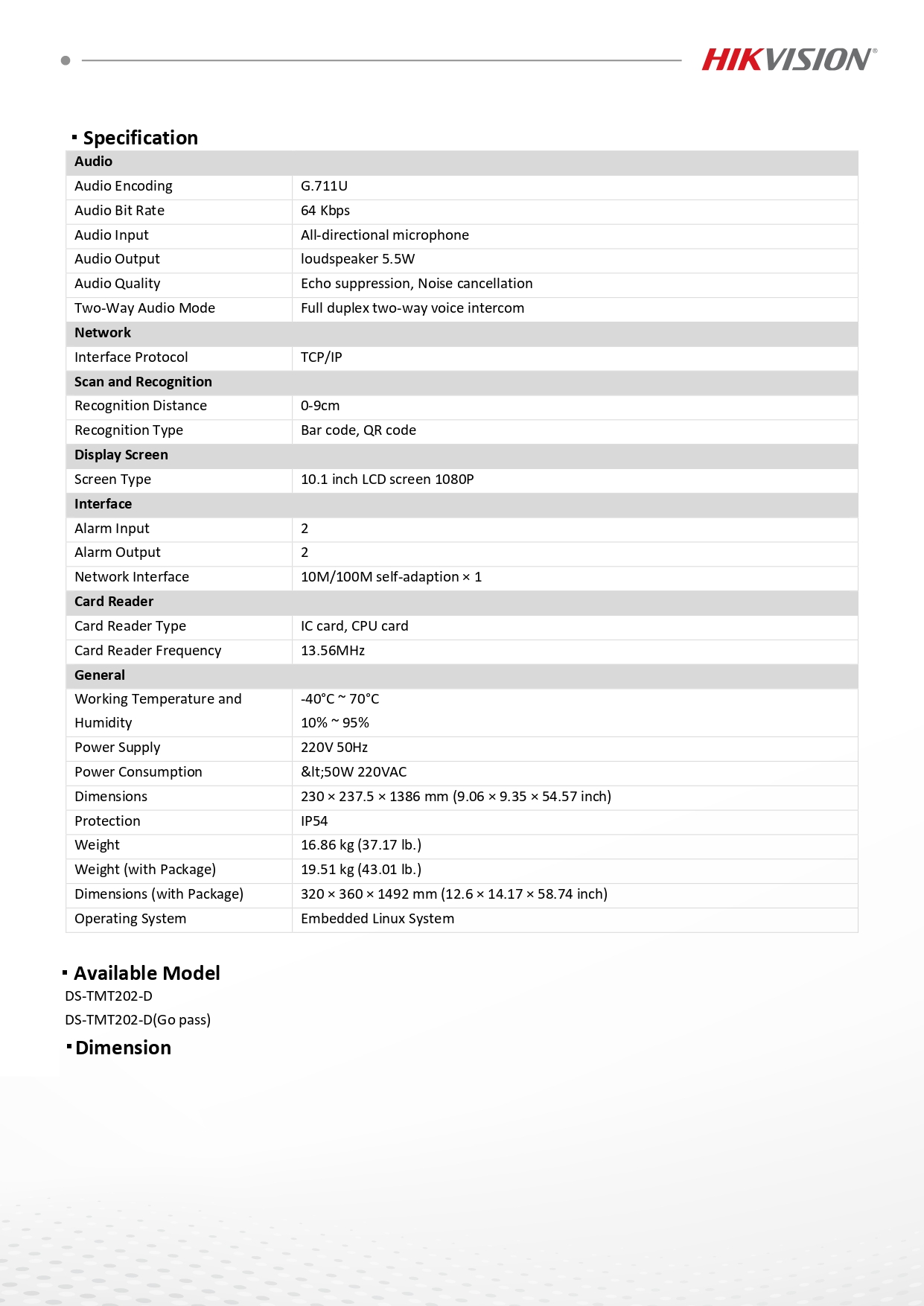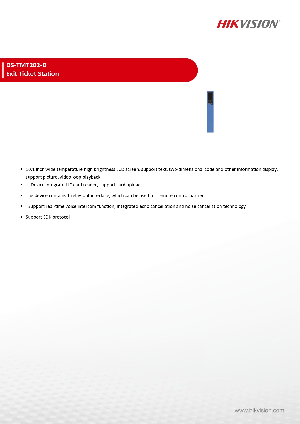 HIKVISION Exit Ticket Station Model DS-TMT202-D ขอราคาพิเศษสำหรับงานโครงการ ติดต่อฝ่ายขาย Line ID : @aimonline ฝ่ายขายโทร: 063-879-9917 ( สินค้ายังไม่รวมภาษีมูลค่าเพิ่ม, ค่าขนส่ง ) เช็คสต๊อกล่าสุดสินค้าก่อนสั่งซื้อ ราคายังไม่รวมค่าติดตั้ง #NP 24