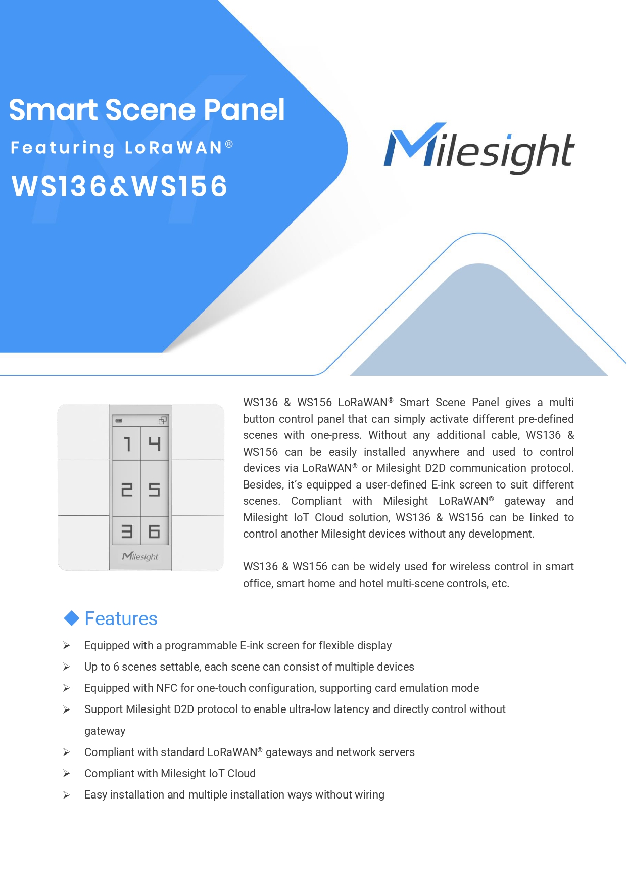 Milesight Smart Scene Panel Model WS156ขอราคาพิเศษสำหรับงานโครงการ ติดต่อฝ่ายขาย Line ID : @aimonline ฝ่ายขายโทร: 063-879-9917 ( สินค้ายังไม่รวมภาษีมูลค่าเพิ่ม, ค่าขนส่ง ) เช็คสต๊อกล่าสุดสินค้าก่อนสั่งซื้อ ราคายังไม่รวมค่าติดตั้ง #NP 24