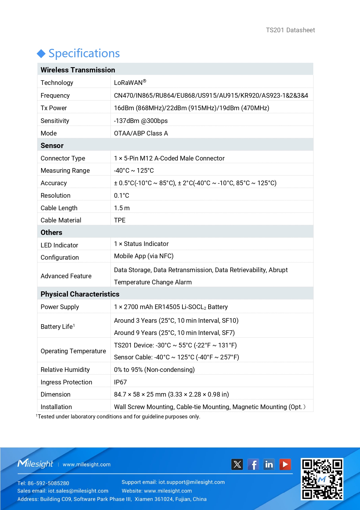 Milesight Cost-Effective Temperature Sensor Model TS201ขอราคาพิเศษสำหรับงานโครงการ ติดต่อฝ่ายขาย Line ID : @aimonline ฝ่ายขายโทร: 063-879-9917 ( สินค้ายังไม่รวมภาษีมูลค่าเพิ่ม, ค่าขนส่ง ) เช็คสต๊อกล่าสุดสินค้าก่อนสั่งซื้อ ราคายังไม่รวมค่าติดตั้ง #NP 24