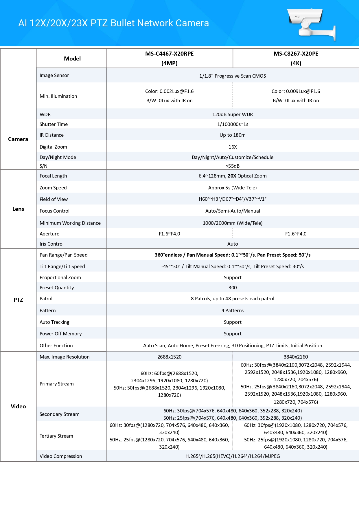 Milesight AI 5X/20X/23X PTZ Bullet Plus Network Camera Model MS-C2967-X23R(T)PC(2MP)ขอราคาพิเศษสำหรับงานโครงการ ติดต่อฝ่ายขาย Line ID : @aimonline ฝ่ายขายโทร: 063-879-9917 ( สินค้ายังไม่รวมภาษีมูลค่าเพิ่ม, ค่าขนส่ง ) เช็คสต๊อกล่าสุดสินค้าก่อนสั่งซื้อ ราคายังไม่รวมค่าติดตั้ง #NP 24