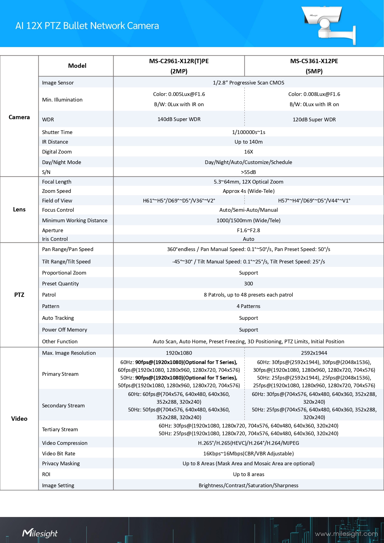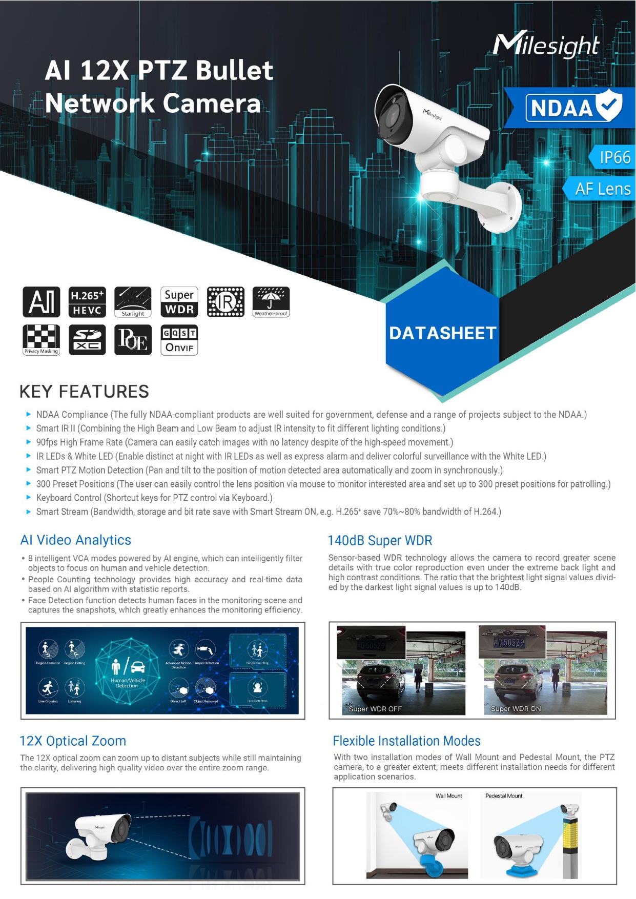 Milesight AI 12X PTZ Bullet Network Camera Model MS-C2961-X12R(T)PE(2MP)ขอราคาพิเศษสำหรับงานโครงการ ติดต่อฝ่ายขาย Line ID : @aimonline ฝ่ายขายโทร: 063-879-9917 ( สินค้ายังไม่รวมภาษีมูลค่าเพิ่ม, ค่าขนส่ง ) เช็คสต๊อกล่าสุดสินค้าก่อนสั่งซื้อ ราคายังไม่รวมค่าติดตั้ง #NP 24