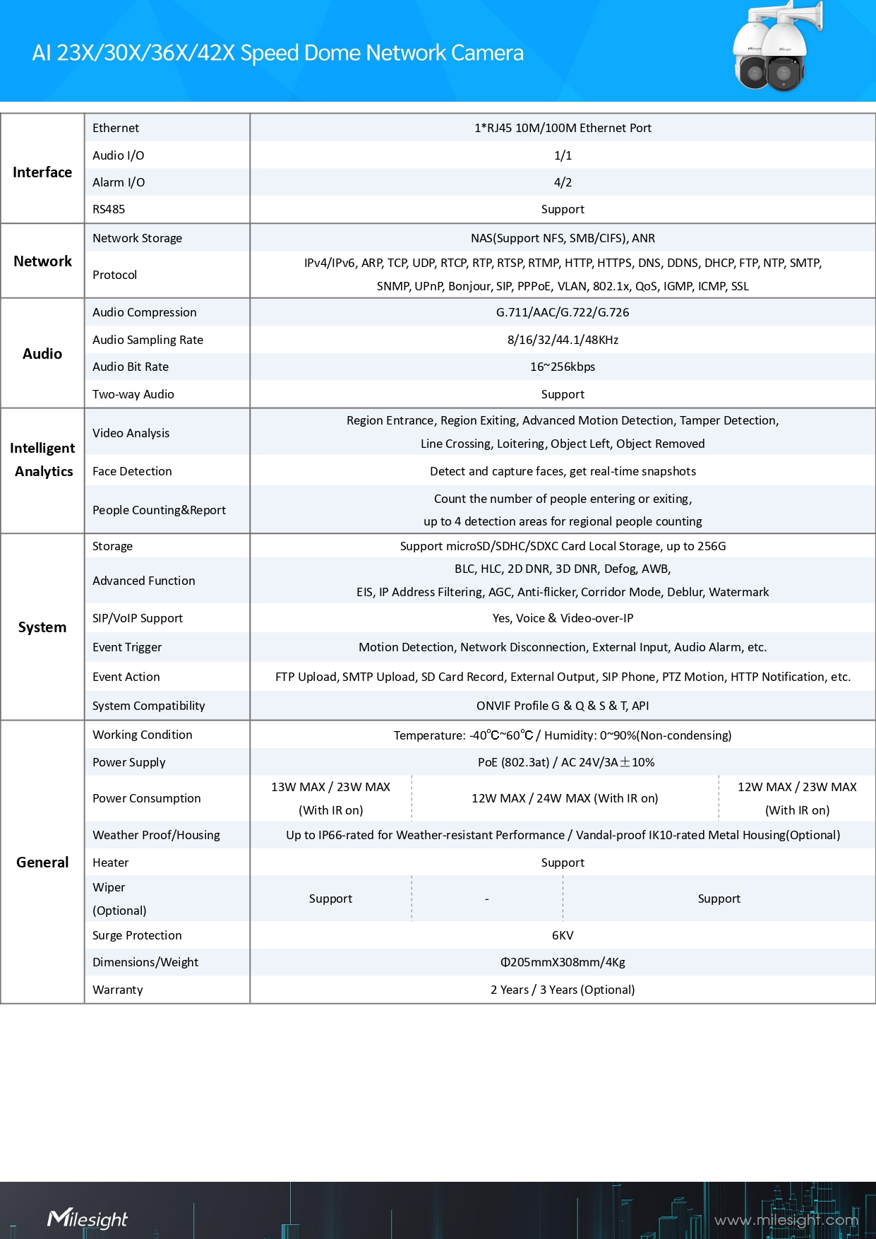 Milesight AI 23X/30X/36X/42X Speed Dome Network Camera Model MS-C2941-X42R(T)PC(2MP)ขอราคาพิเศษสำหรับงานโครงการ ติดต่อฝ่ายขาย Line ID : @aimonline ฝ่ายขายโทร: 063-879-9917 ( สินค้ายังไม่รวมภาษีมูลค่าเพิ่ม, ค่าขนส่ง ) เช็คสต๊อกล่าสุดสินค้าก่อนสั่งซื้อ ราคายังไม่รวมค่าติดตั้ง #NP 24