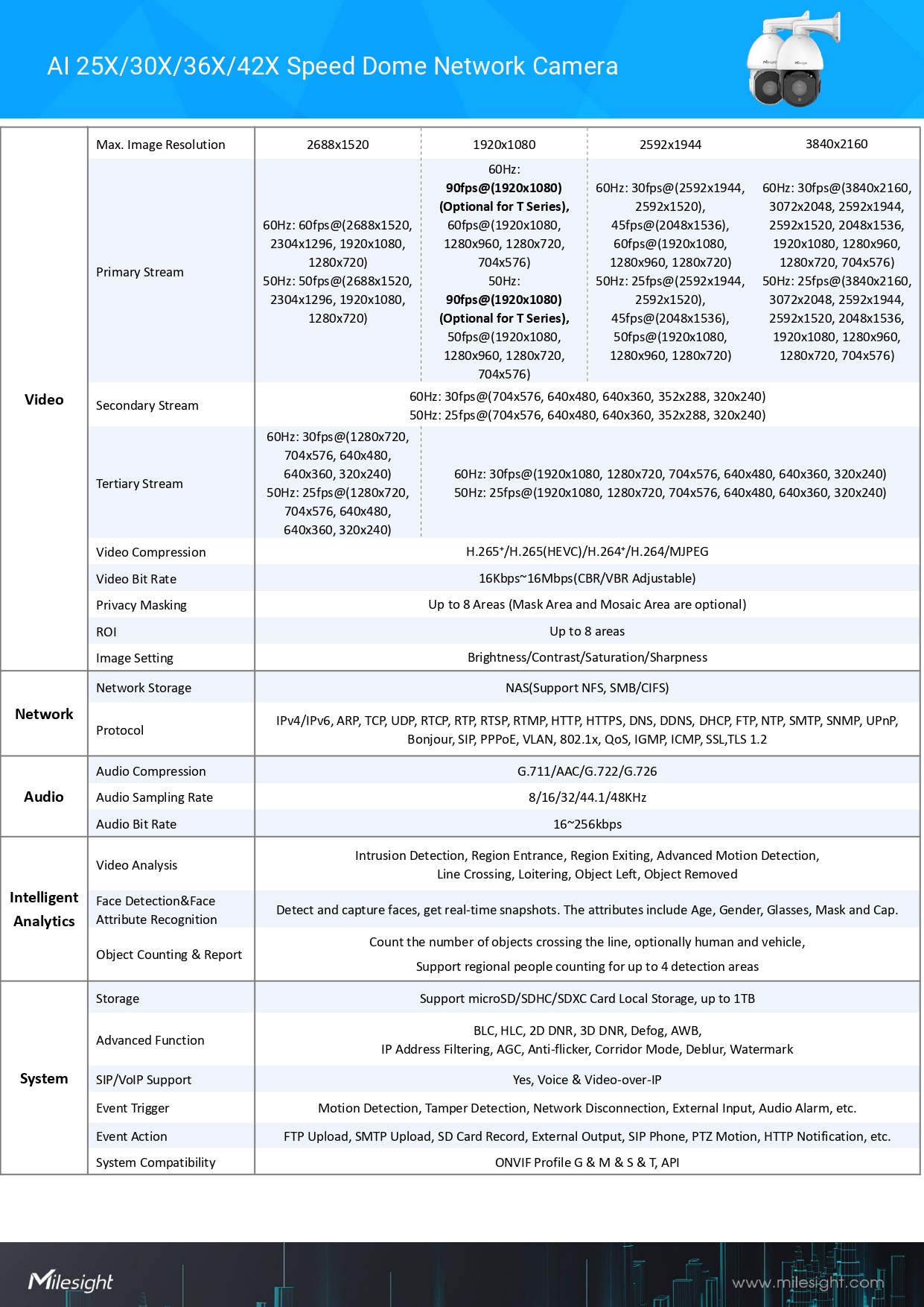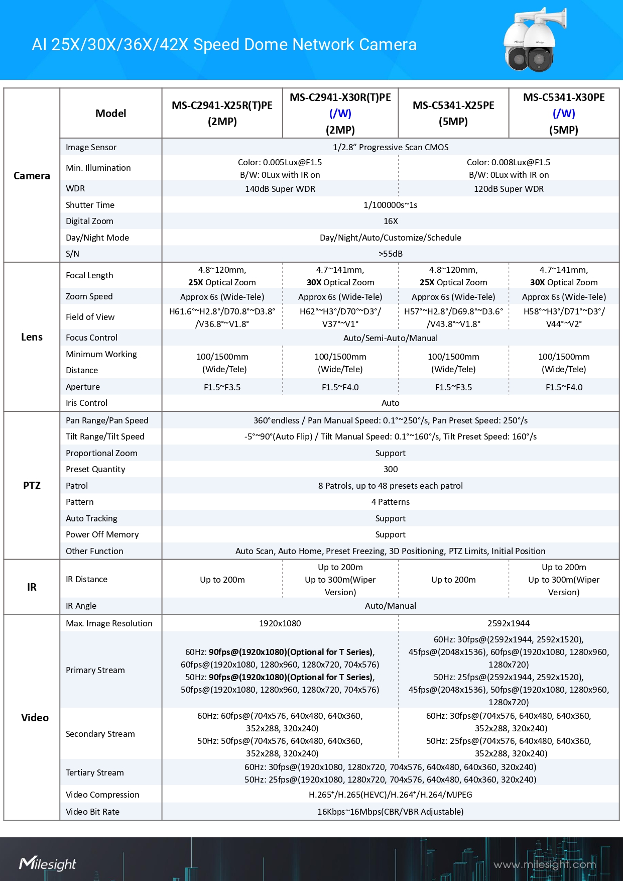 Milesight AI 25X/30X/36X/42X Speed Dome Network Camera Model MS-C5341-X30PE(/W)(5MP)ขอราคาพิเศษสำหรับงานโครงการ ติดต่อฝ่ายขาย Line ID : @aimonline ฝ่ายขายโทร: 063-879-9917 ( สินค้ายังไม่รวมภาษีมูลค่าเพิ่ม, ค่าขนส่ง ) เช็คสต๊อกล่าสุดสินค้าก่อนสั่งซื้อ ราคายังไม่รวมค่าติดตั้ง #NP 24