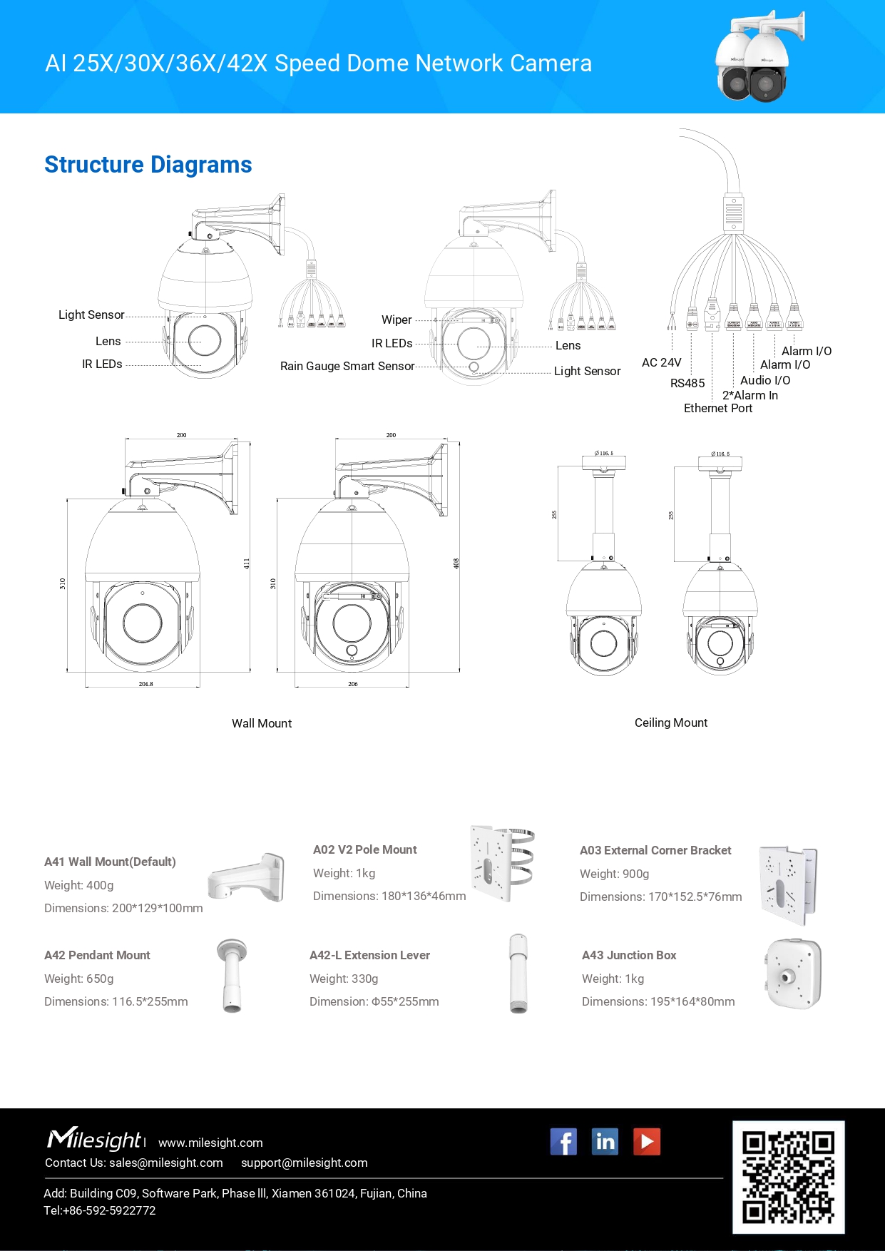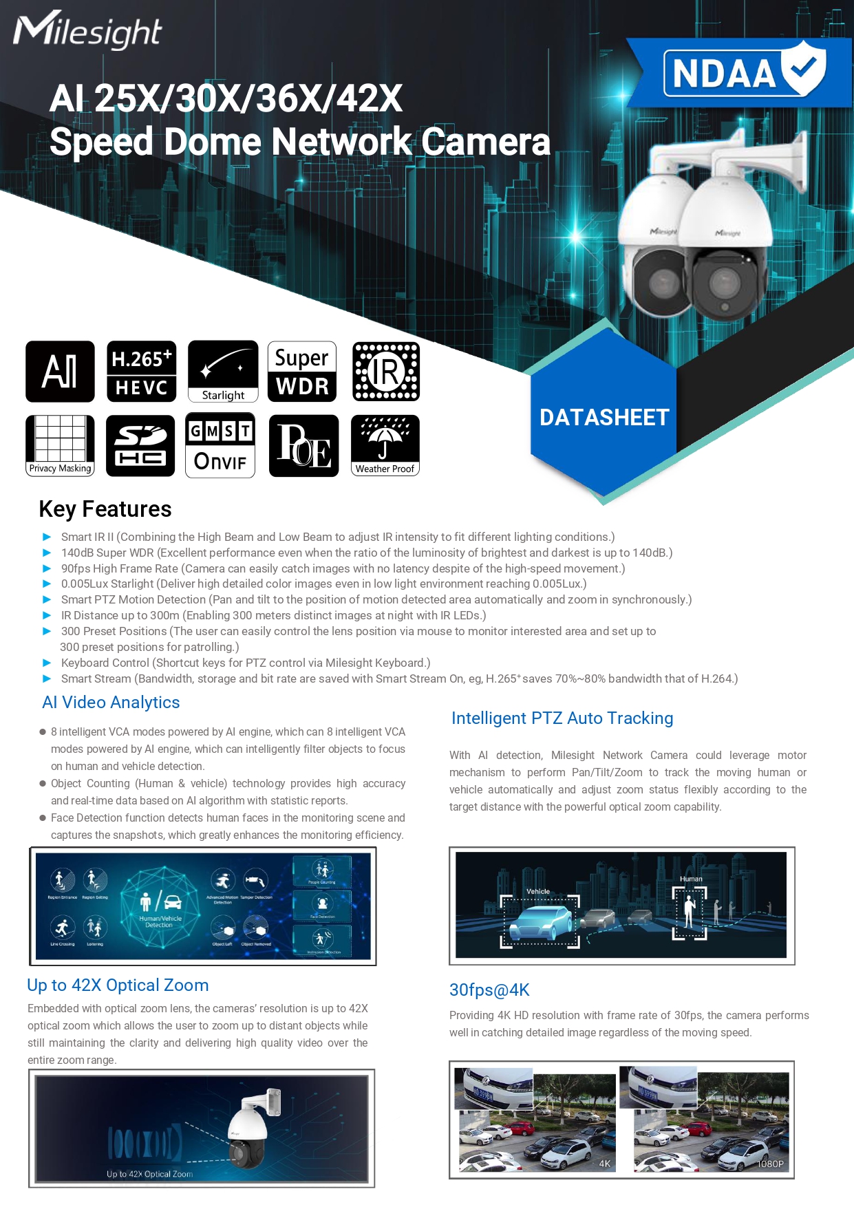 Milesight AI 25X/30X/36X/42X Speed Dome Network Camera Model MS-C2941-X42R(T)PE(/W)(2MP)ขอราคาพิเศษสำหรับงานโครงการ ติดต่อฝ่ายขาย Line ID : @aimonline ฝ่ายขายโทร: 063-879-9917 ( สินค้ายังไม่รวมภาษีมูลค่าเพิ่ม, ค่าขนส่ง ) เช็คสต๊อกล่าสุดสินค้าก่อนสั่งซื้อ ราคายังไม่รวมค่าติดตั้ง #NP 24