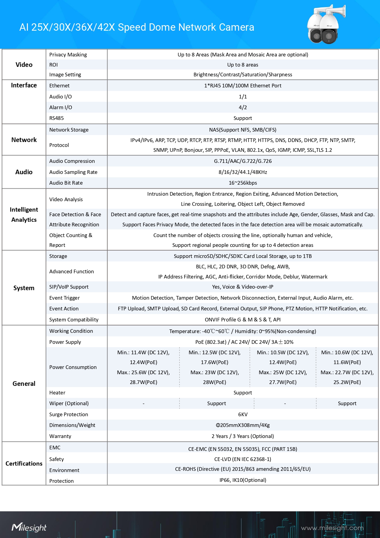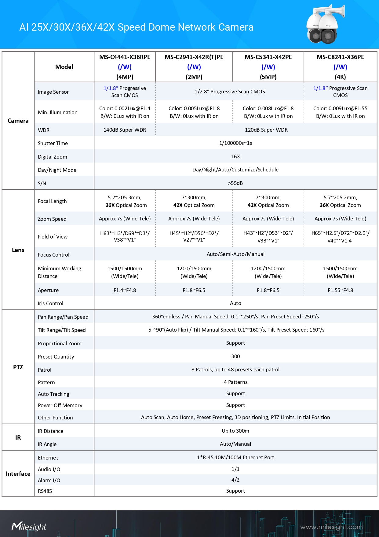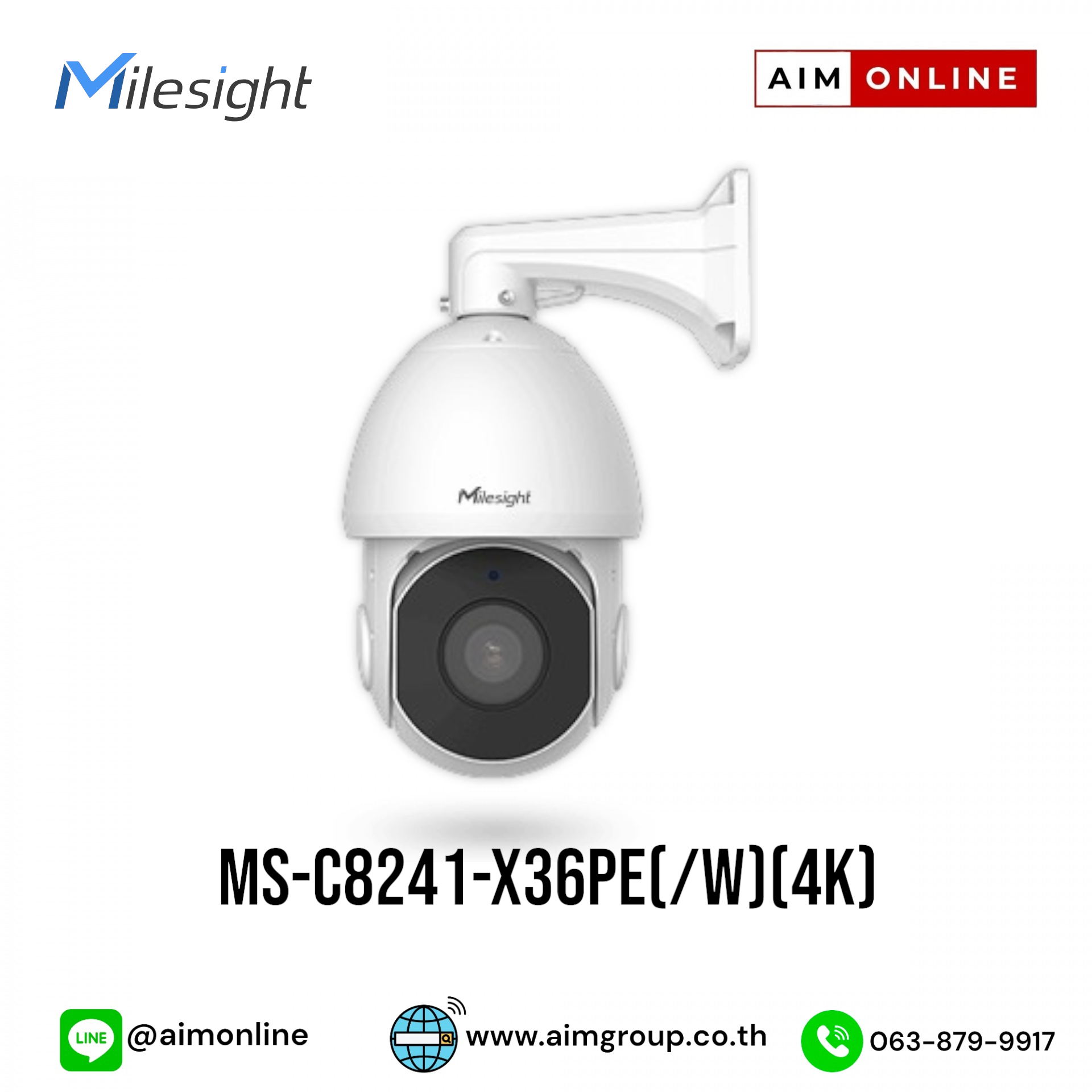 Milesight AI 25X/30X/36X/42X Speed Dome Network Camera Model MS-C8241-X36PE(/W)(4K)ขอราคาพิเศษสำหรับงานโครงการ ติดต่อฝ่ายขาย Line ID : @aimonline ฝ่ายขายโทร: 063-879-9917 ( สินค้ายังไม่รวมภาษีมูลค่าเพิ่ม, ค่าขนส่ง ) เช็คสต๊อกล่าสุดสินค้าก่อนสั่งซื้อ ราคายังไม่รวมค่าติดตั้ง #NP 24