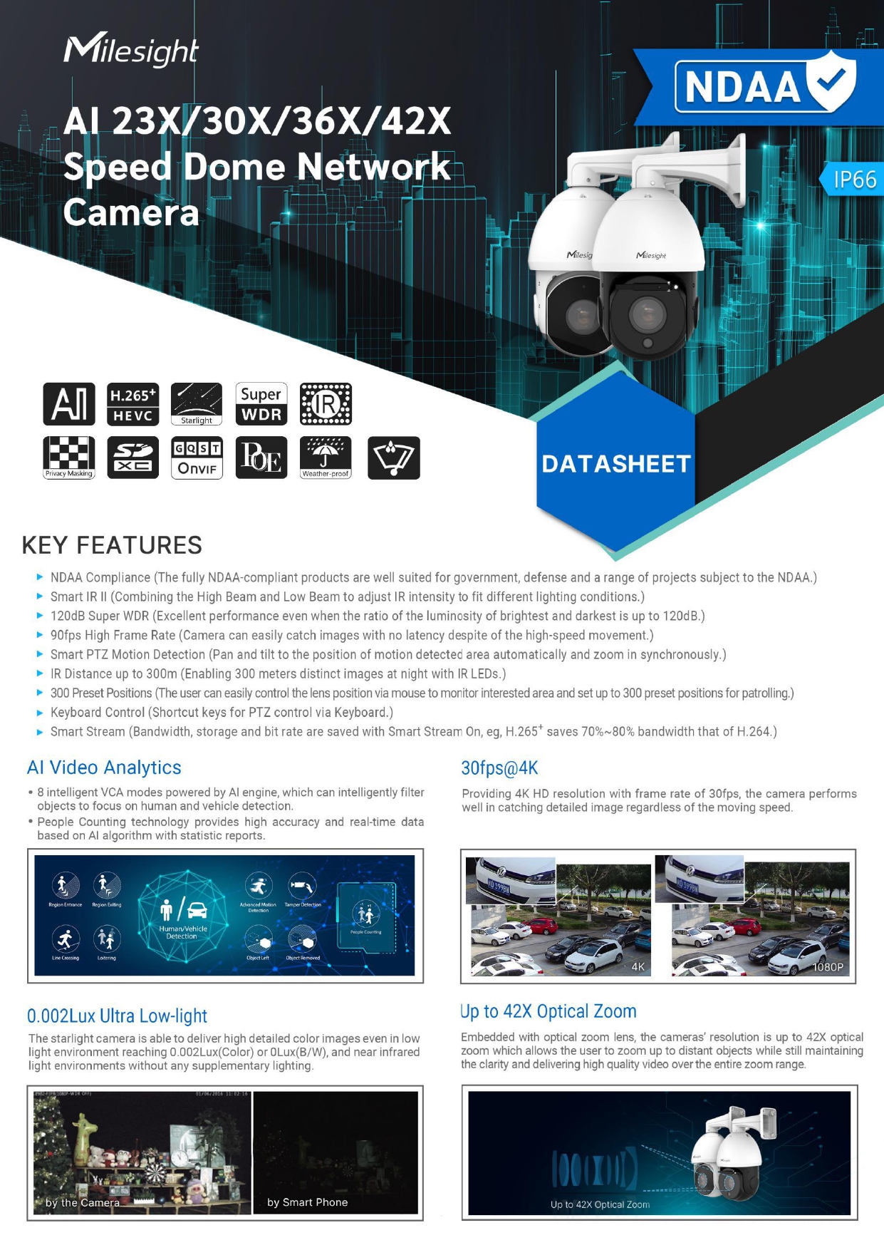 Milesight AI 23X/30X/36X/42X Speed Dome Network Camera Model MS-C2841-X36TPA(2MP)ขอราคาพิเศษสำหรับงานโครงการ ติดต่อฝ่ายขาย Line ID : @aimonline ฝ่ายขายโทร: 063-879-9917 ( สินค้ายังไม่รวมภาษีมูลค่าเพิ่ม, ค่าขนส่ง ) เช็คสต๊อกล่าสุดสินค้าก่อนสั่งซื้อ ราคายังไม่รวมค่าติดตั้ง #NP 24