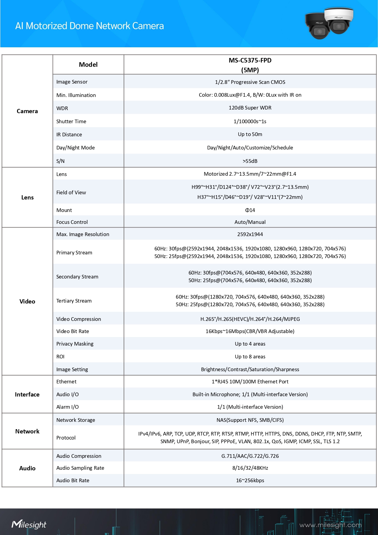 Milesight AI Motorized Dome NetworkCamera Model MS-C4575-FPD(4MP)ขอราคาพิเศษสำหรับงานโครงการ ติดต่อฝ่ายขาย Line ID : @aimonline ฝ่ายขายโทร: 063-879-9917 ( สินค้ายังไม่รวมภาษีมูลค่าเพิ่ม, ค่าขนส่ง ) เช็คสต๊อกล่าสุดสินค้าก่อนสั่งซื้อ ราคายังไม่รวมค่าติดตั้ง #NP 24
