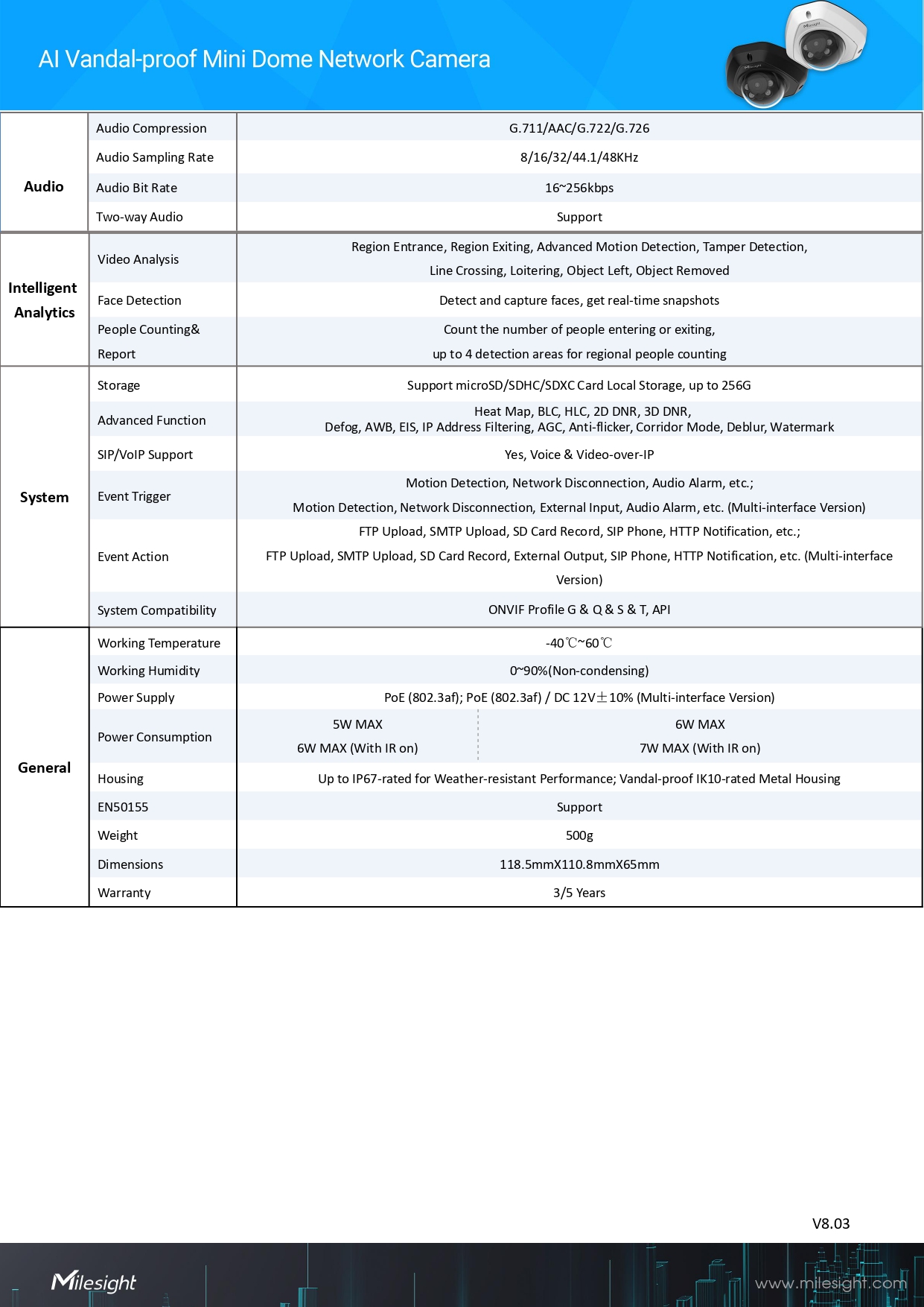 Milesight AI Vandal-proof Mini Dome Network Camera Model MS-C8173-PC(4K)ขอราคาพิเศษสำหรับงานโครงการ ติดต่อฝ่ายขาย Line ID : @aimonline ฝ่ายขายโทร: 063-879-9917 ( สินค้ายังไม่รวมภาษีมูลค่าเพิ่ม, ค่าขนส่ง ) เช็คสต๊อกล่าสุดสินค้าก่อนสั่งซื้อ ราคายังไม่รวมค่าติดตั้ง #NP 24