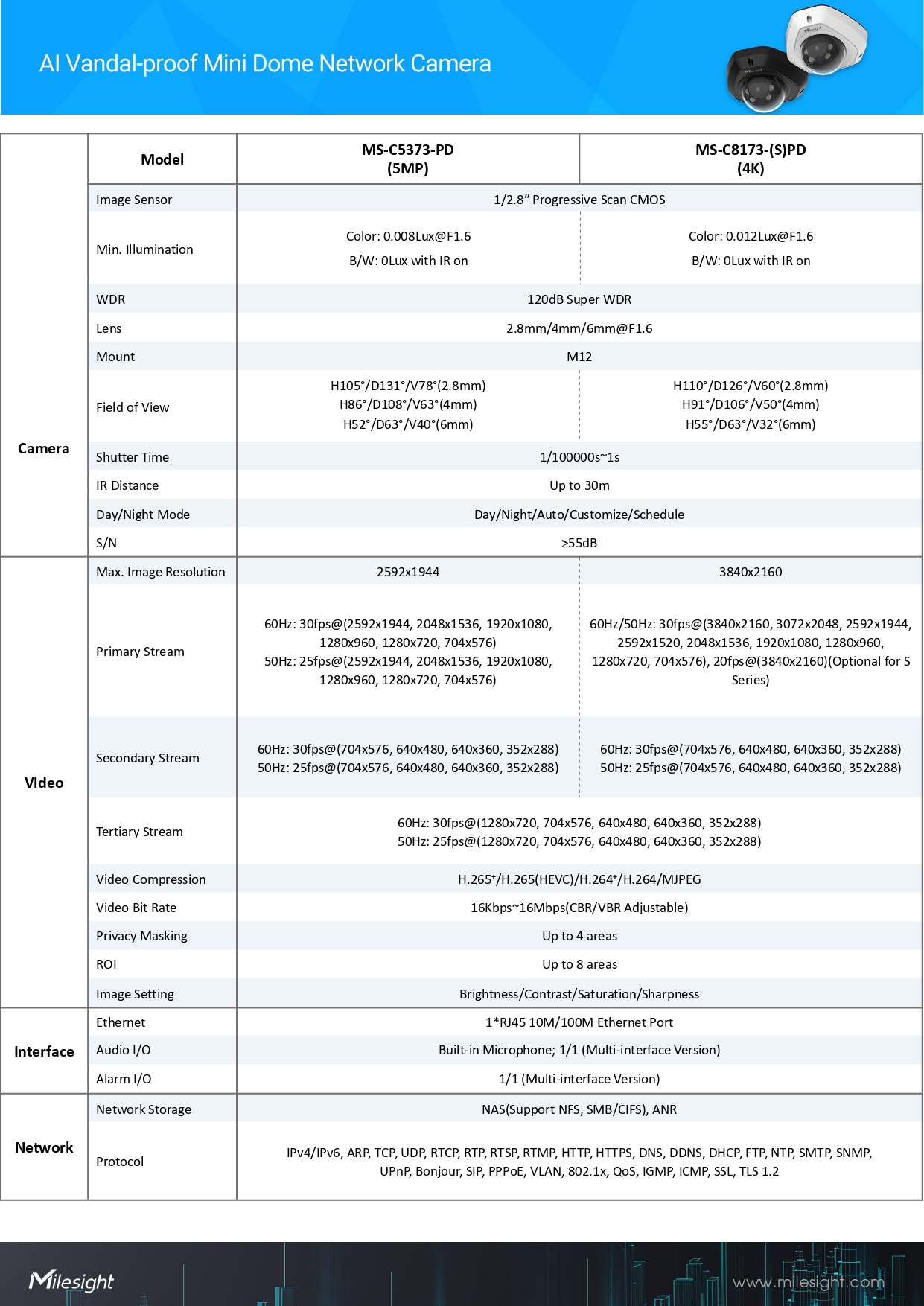 Milesight AI Vandal-proof Mini Dome Network Camera Model MS-C2973-(R)PD (2MP)ขอราคาพิเศษสำหรับงานโครงการ ติดต่อฝ่ายขาย Line ID : @aimonline ฝ่ายขายโทร: 063-879-9917 ( สินค้ายังไม่รวมภาษีมูลค่าเพิ่ม, ค่าขนส่ง ) เช็คสต๊อกล่าสุดสินค้าก่อนสั่งซื้อ ราคายังไม่รวมค่าติดตั้ง #NP 24