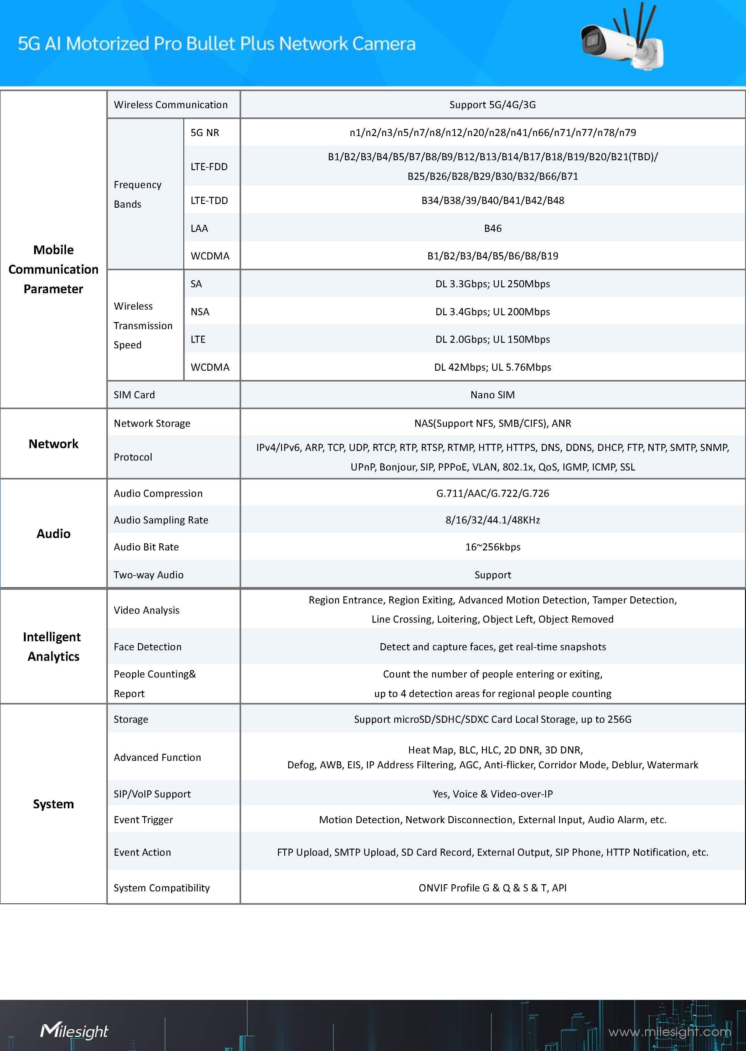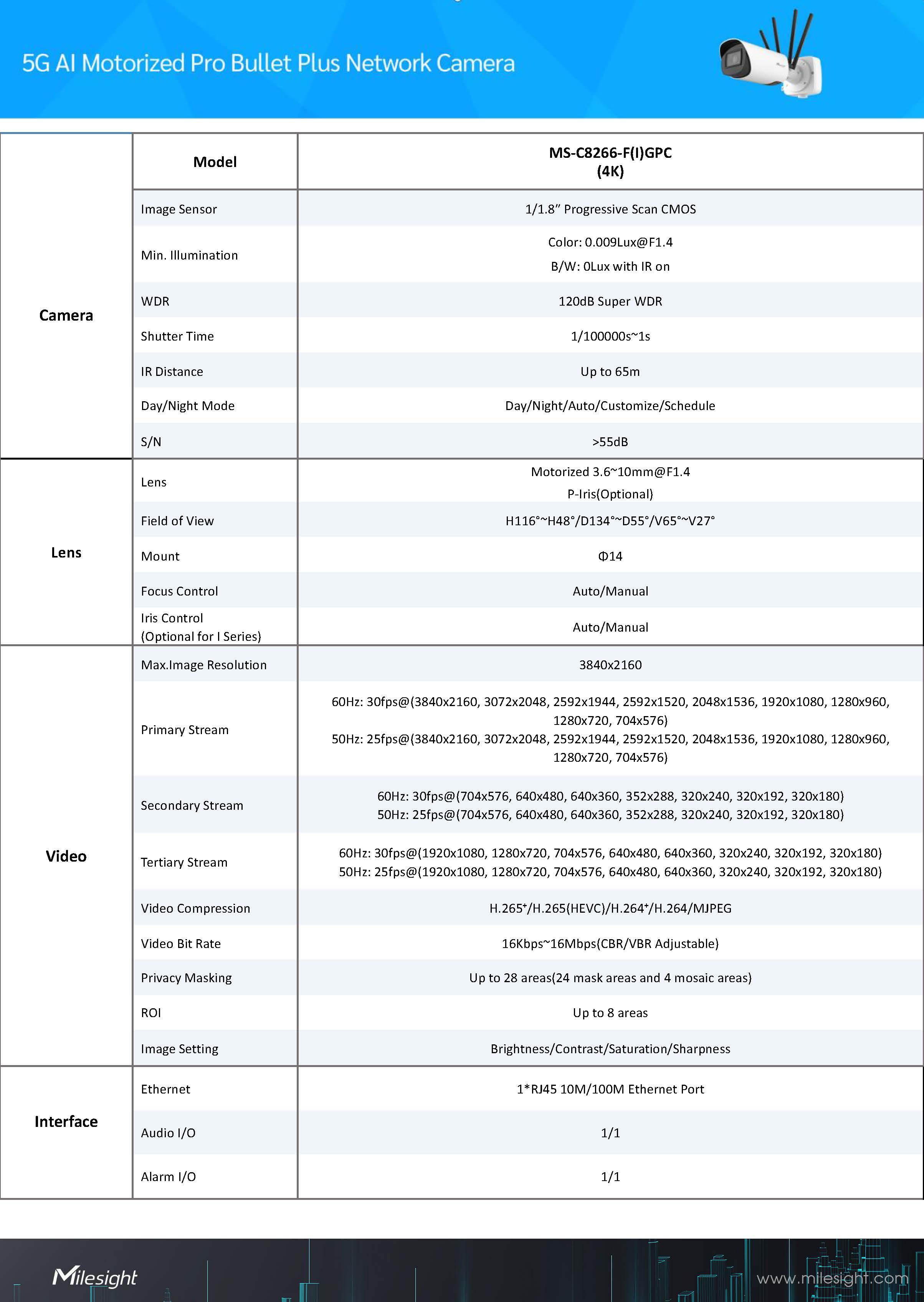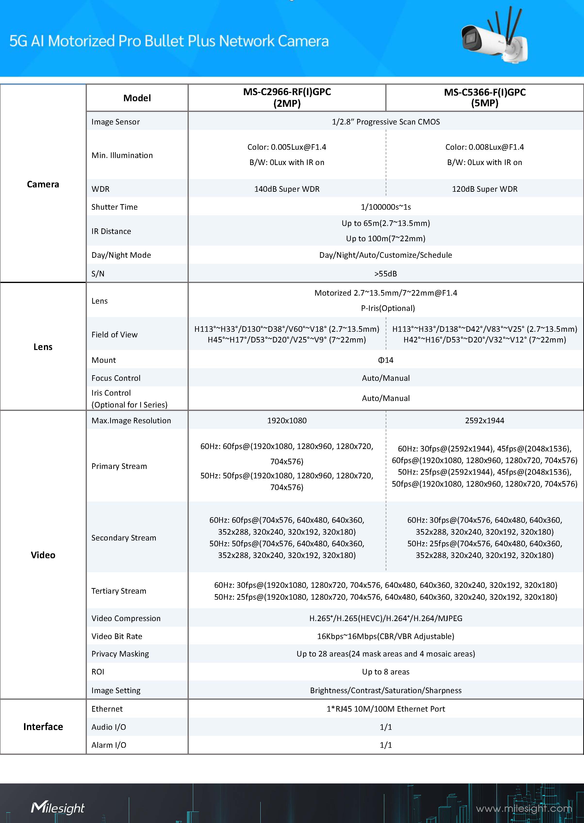 Milesight5G AI Motorized Pro Bullet Plus Network CameraModel:MS-C5366-F(I)GPC(5MP)ขอราคาพิเศษสำหรับงานโครงการ ติดต่อฝ่ายขาย Line ID : @aimonline ฝ่ายขายโทร: 063-879-9917 ( สินค้ายังไม่รวมภาษีมูลค่าเพิ่ม, ค่าขนส่ง ) เช็คสต๊อกล่าสุดสินค้าก่อนสั่งซื้อ ราคายังไม่รวมค่าติดตั้ง #NP24