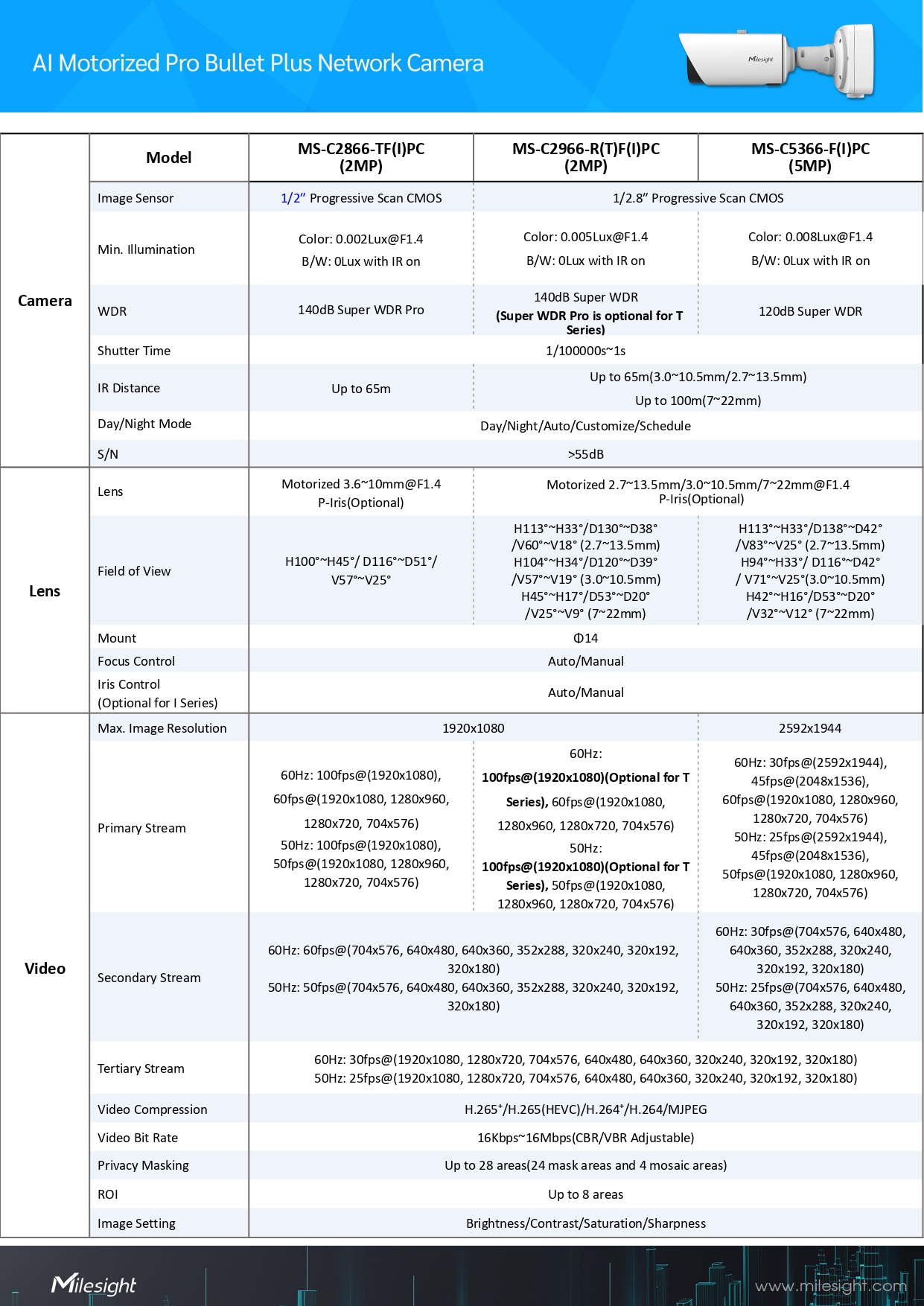Milesight AI Motorized Pro Bullet Plus Network Camera Model MS-C2866-TF(I)PC (2MP)ขอราคาพิเศษสำหรับงานโครงการ ติดต่อฝ่ายขาย Line ID : @aimonline ฝ่ายขายโทร: 063-879-9917 ( สินค้ายังไม่รวมภาษีมูลค่าเพิ่ม, ค่าขนส่ง ) เช็คสต๊อกล่าสุดสินค้าก่อนสั่งซื้อ ราคายังไม่รวมค่าติดตั้ง #NP 24