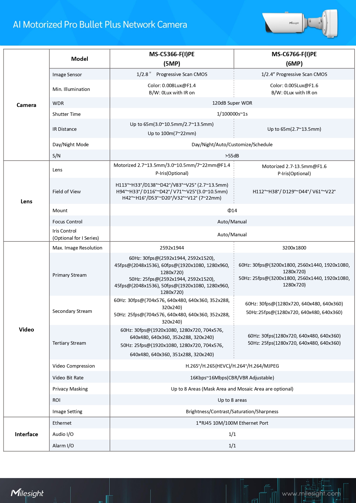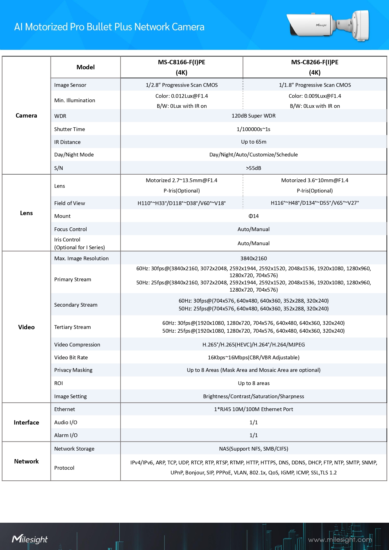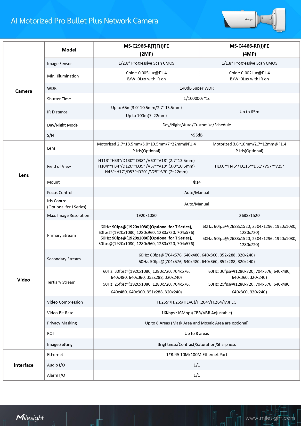 Milesight AI Motorized Pro Bullet Plus Network Camera Model MS-C2966-R(T)F(I)PE (2MP)ขอราคาพิเศษสำหรับงานโครงการ ติดต่อฝ่ายขาย Line ID : @aimonline ฝ่ายขายโทร: 063-879-9917 ( สินค้ายังไม่รวมภาษีมูลค่าเพิ่ม, ค่าขนส่ง ) เช็คสต๊อกล่าสุดสินค้าก่อนสั่งซื้อ ราคายังไม่รวมค่าติดตั้ง #NP 24