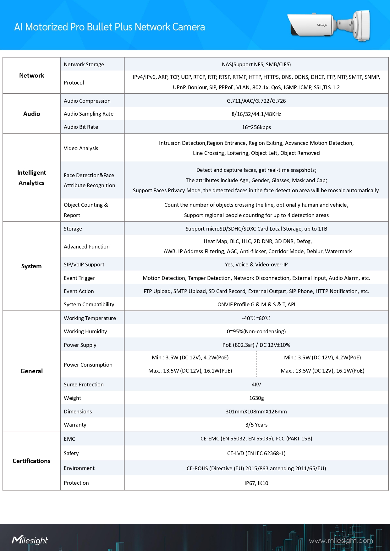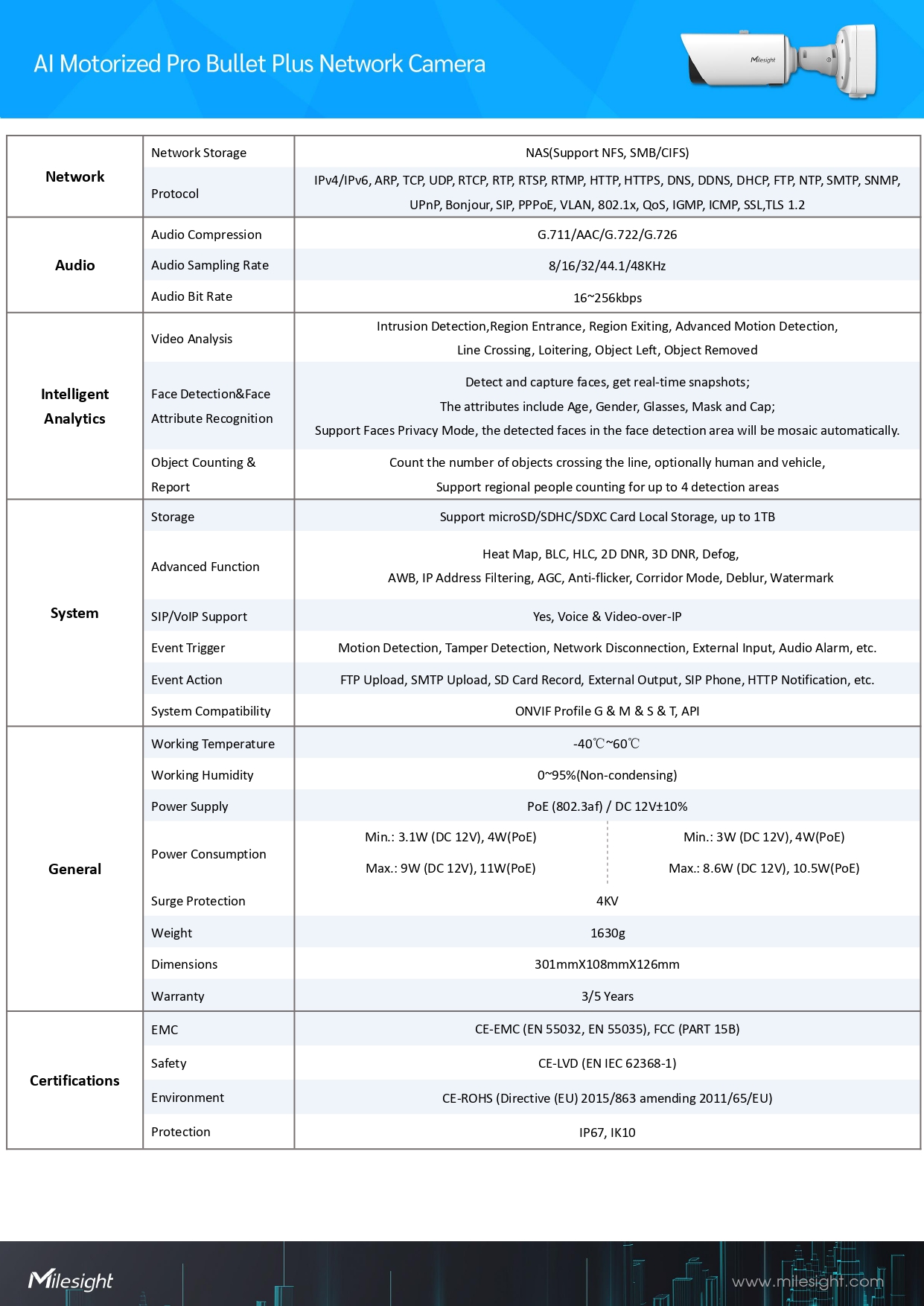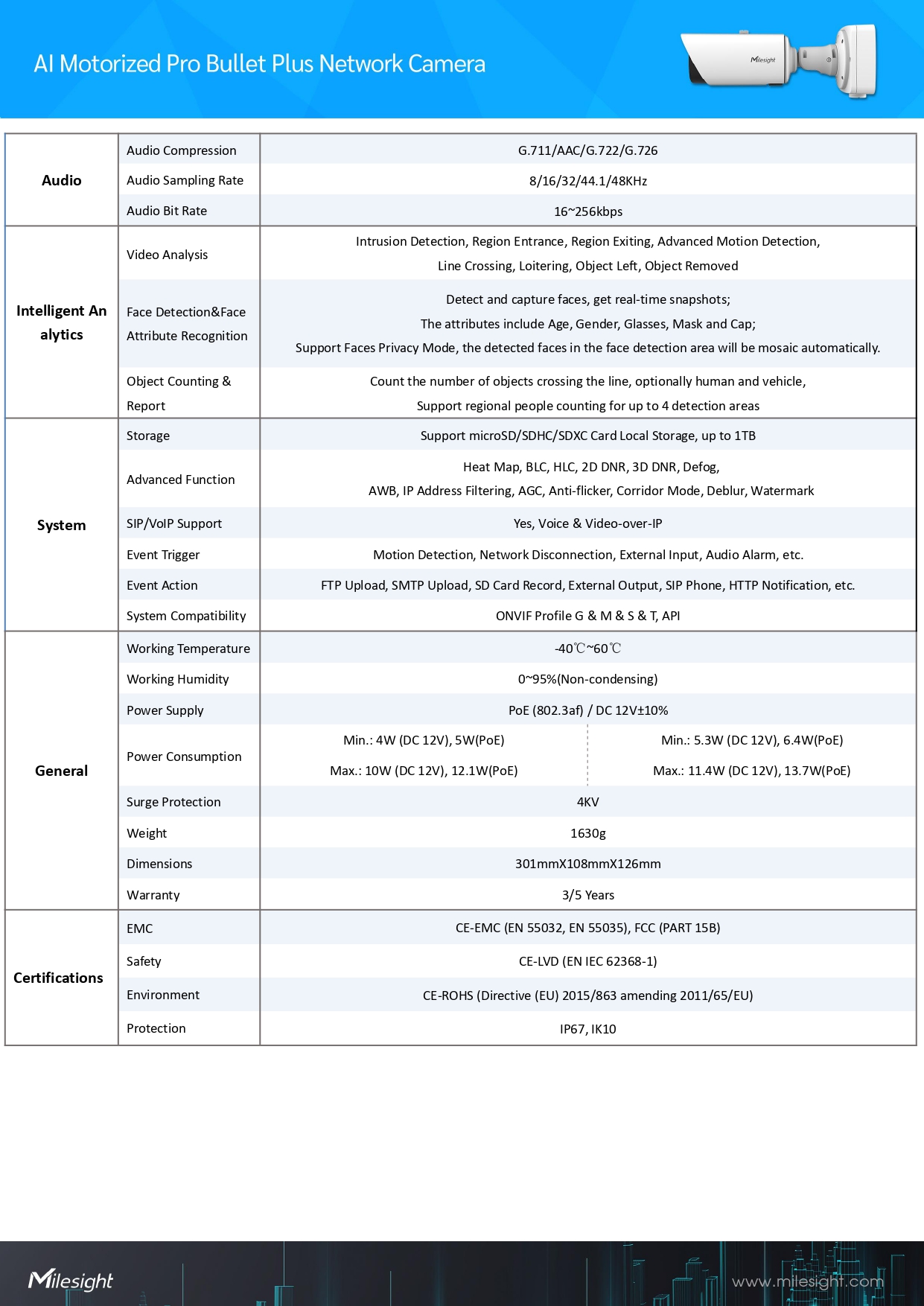 Milesight AI Motorized Pro Bullet Plus Network Camera Model MS-C2966-R(T)F(I)PE (2MP)ขอราคาพิเศษสำหรับงานโครงการ ติดต่อฝ่ายขาย Line ID : @aimonline ฝ่ายขายโทร: 063-879-9917 ( สินค้ายังไม่รวมภาษีมูลค่าเพิ่ม, ค่าขนส่ง ) เช็คสต๊อกล่าสุดสินค้าก่อนสั่งซื้อ ราคายังไม่รวมค่าติดตั้ง #NP 24