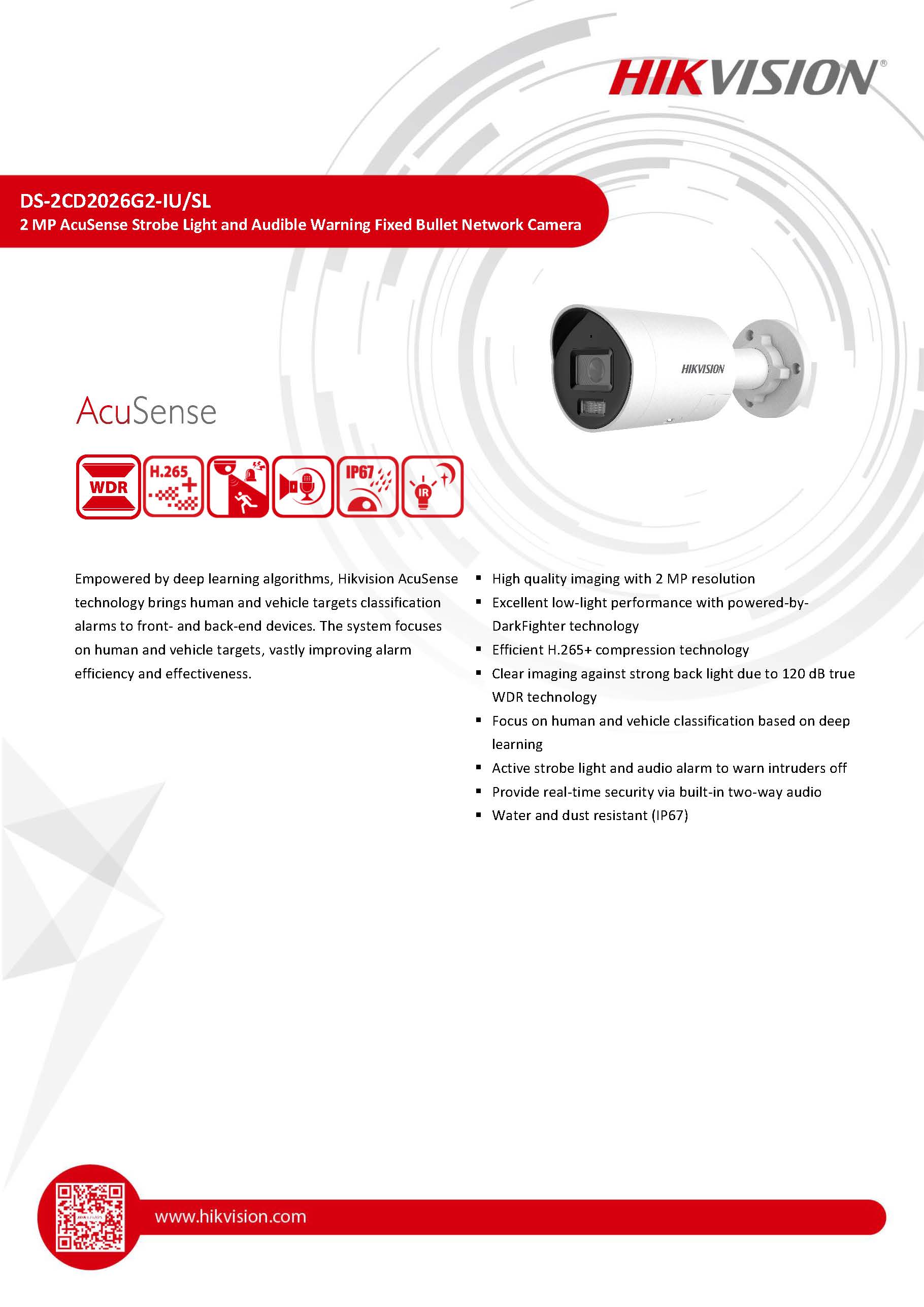 HIKVISION 2 MP AcuSense Strobe Light and Audible Warning Fixed Mini Bullet Network CameraModel:DS-2CD2026G2-IU/SLขอราคาพิเศษสำหรับงานโครงการ ติดต่อฝ่ายขาย Line ID : @aimonline ฝ่ายขายโทร: 063-879-9917 (สินค้ายังไม่รวมภาษีมูลค่าเพิ่ม, ค่าขนส่ง ) เช็คสต๊อกล่าสุดสินค้าก่อนสั่งซื้อ ราคายังไม่รวมค่าติดตั้ง #NP 24