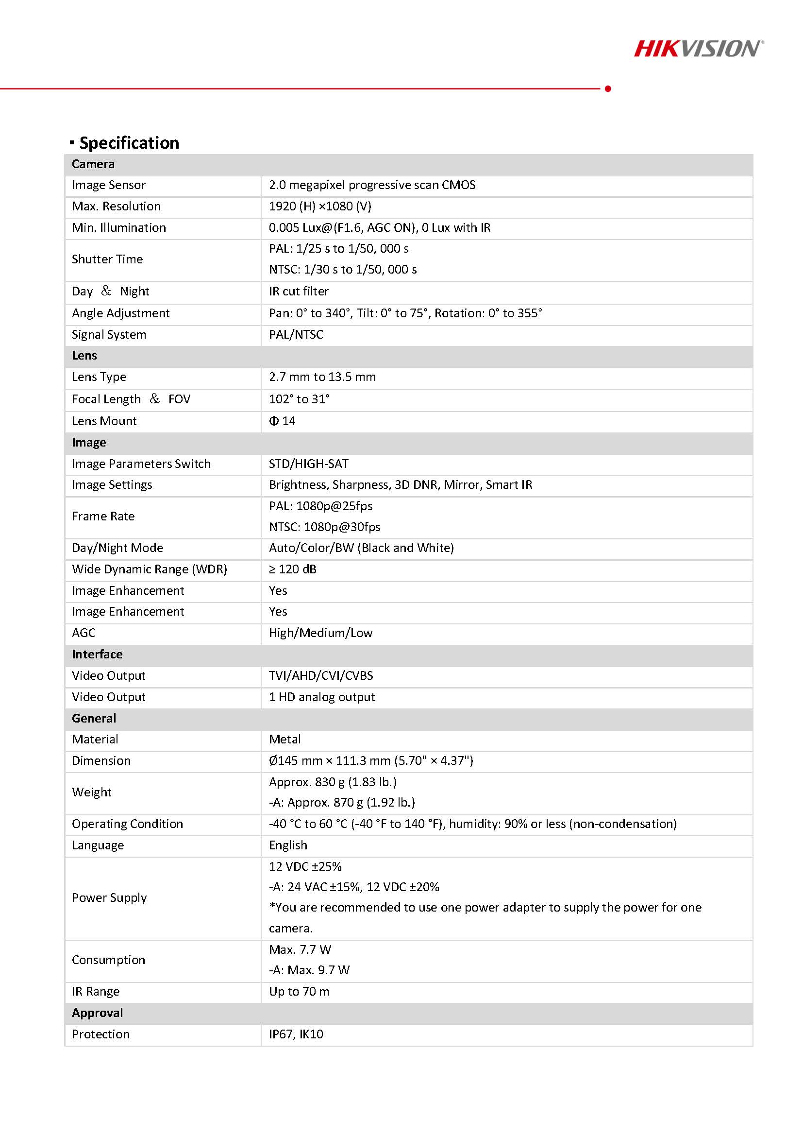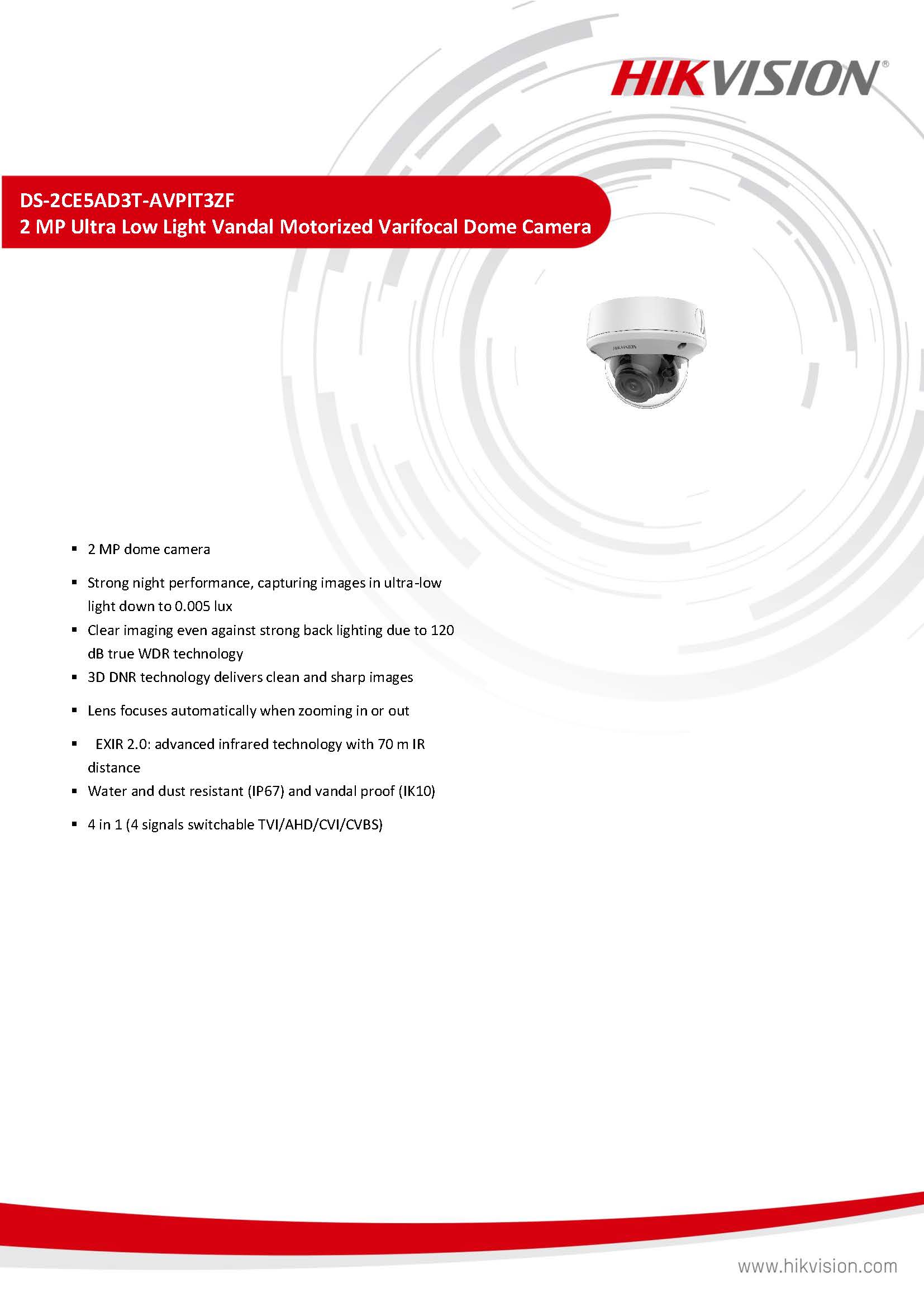 HIKVISION 2 MP Ultra Low Light Vandal Motorized Varifocal Dome Camera Model DS-2CE5AD3T-AVPIT3ZF ขอราคาพิเศษสำหรับงานโครงการ ติดต่อฝ่ายขาย Line ID : @aimonline ฝ่ายขายโทร: 063-879-9917 ( สินค้ายังไม่รวมภาษีมูลค่าเพิ่ม, ค่าขนส่ง ) เช็คสต๊อกล่าสุดสินค้าก่อนสั่งซื้อ ราคายังไม่รวมค่าติดตั้ง #NP 24