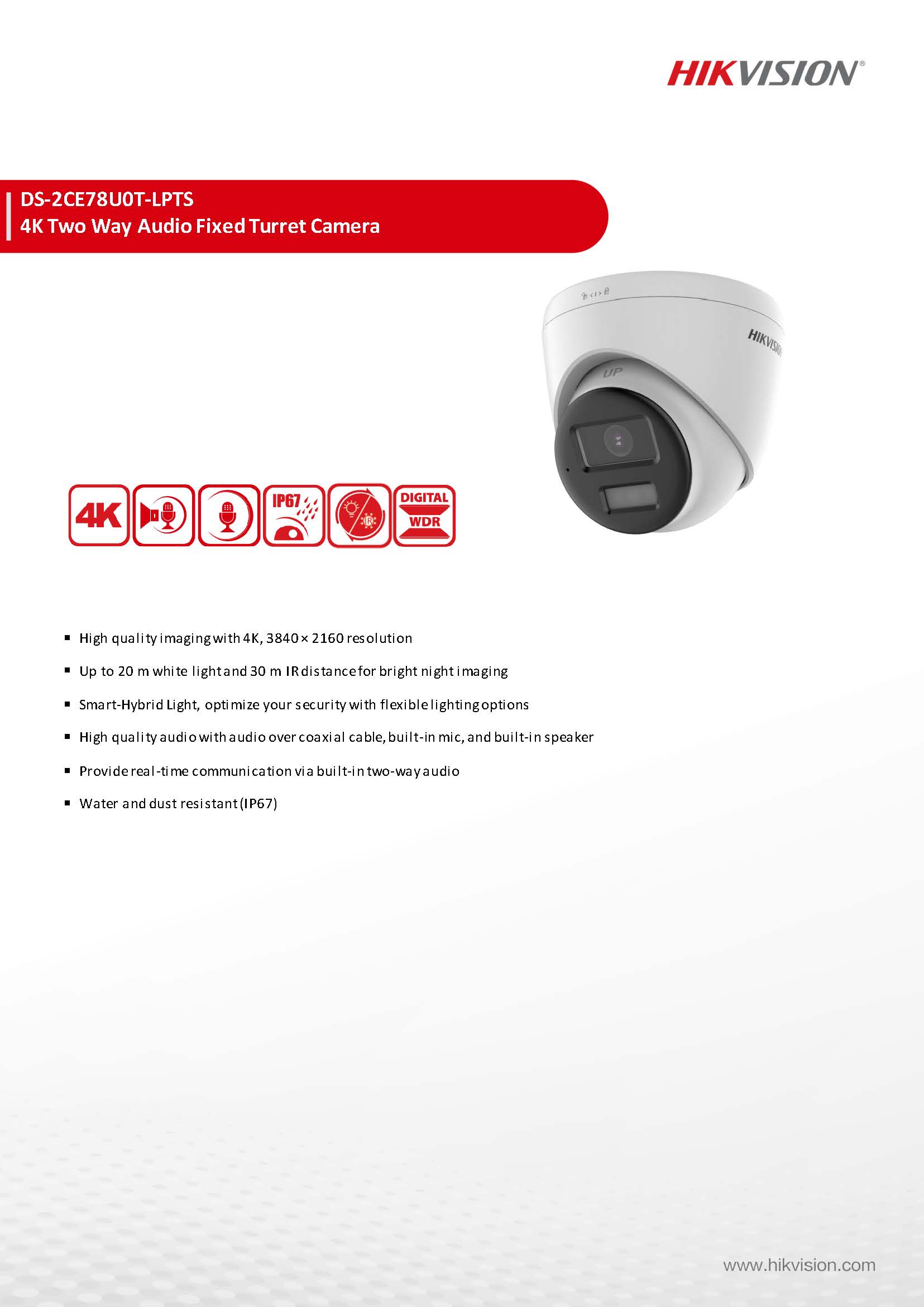 HIKVISION 4K Two Way Audio Fixed Turret Model DS-2CE78U0T-LPTS ขอราคาพิเศษสำหรับงานโครงการ ติดต่อฝ่ายขาย Line ID : @aimonline ฝ่ายขายโทร: 063-879-9917 (สินค้ายังไม่รวมภาษีมูลค่าเพิ่ม, ค่าขนส่ง) เช็คสต๊อกล่าสุดสินค้าก่อนสั่งซื้อ ราคายังไม่รวมค่าติดตั้ง #NP24