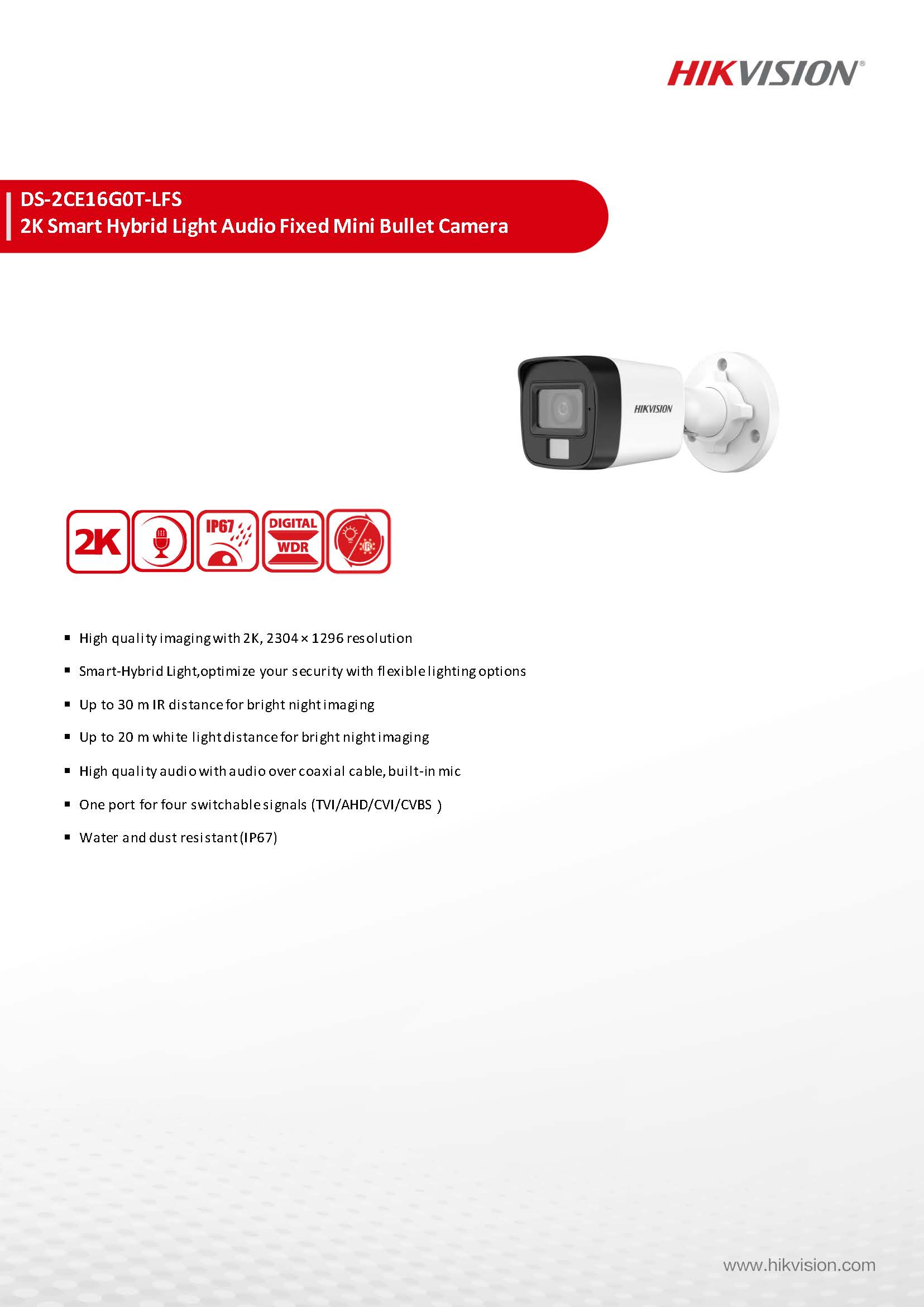 HIKVISION 2K Smart Hybrid Light Audio Fixed Mini Bullet Camera Model DS-2CE16G0T-LFS ขอราคาพิเศษสำหรับงานโครงการ ติดต่อฝ่ายขาย Line ID : @aimonline ฝ่ายขายโทร: 063-879-9917 (สินค้ายังไม่รวมภาษีมูลค่าเพิ่ม, ค่าขนส่ง) เช็คสต๊อกล่าสุดสินค้าก่อนสั่งซื้อ ราคายังไม่รวมค่าติดตั้ง #NP24