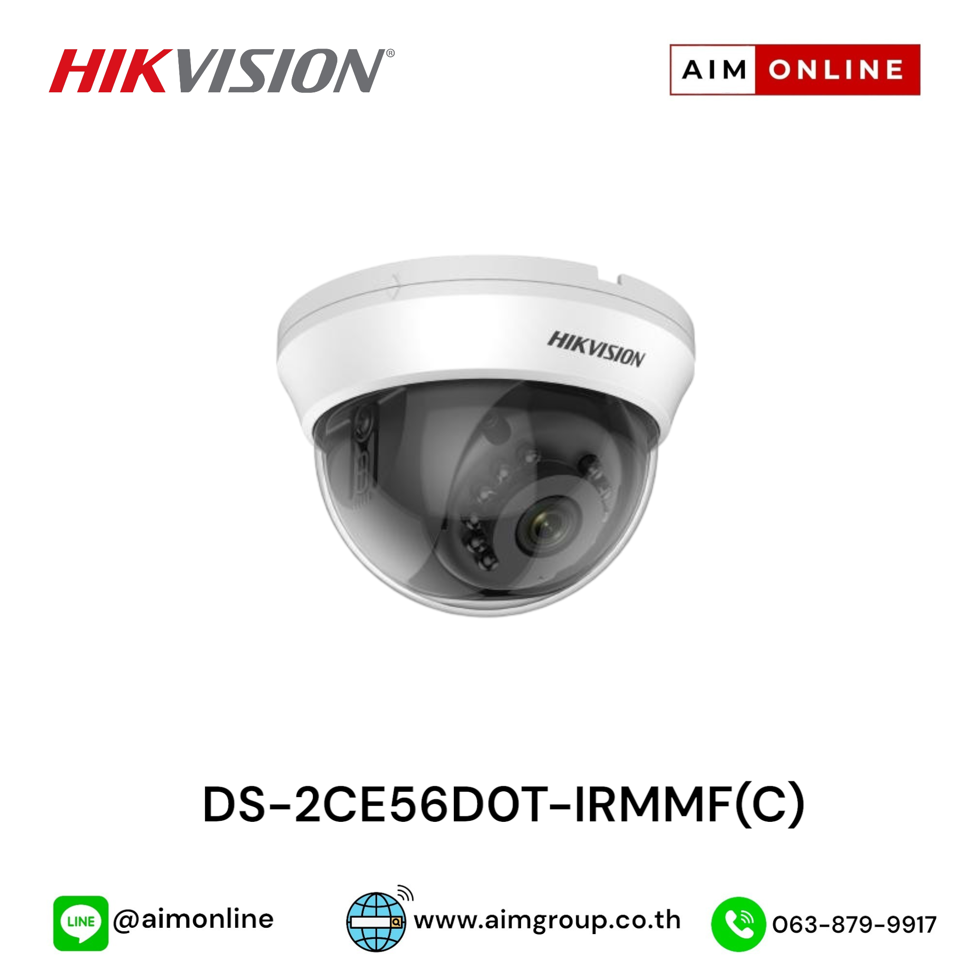 HIKVISION2 MP Indoor Fixed Dome CameraModel:DS-2CE56D0T-IRMMF(C)ขอราคาพิเศษสำหรับงานโครงการ ติดต่อฝ่ายขาย Line ID : @aimonline ฝ่ายขายโทร: 063-879-9917 (สินค้ายังไม่รวมภาษีมูลค่าเพิ่ม, ค่าขนส่ง) เช็คสต๊อกล่าสุดสินค้าก่อนสั่งซื้อ ราคายังไม่รวมค่าติดตั้ง #NP 24